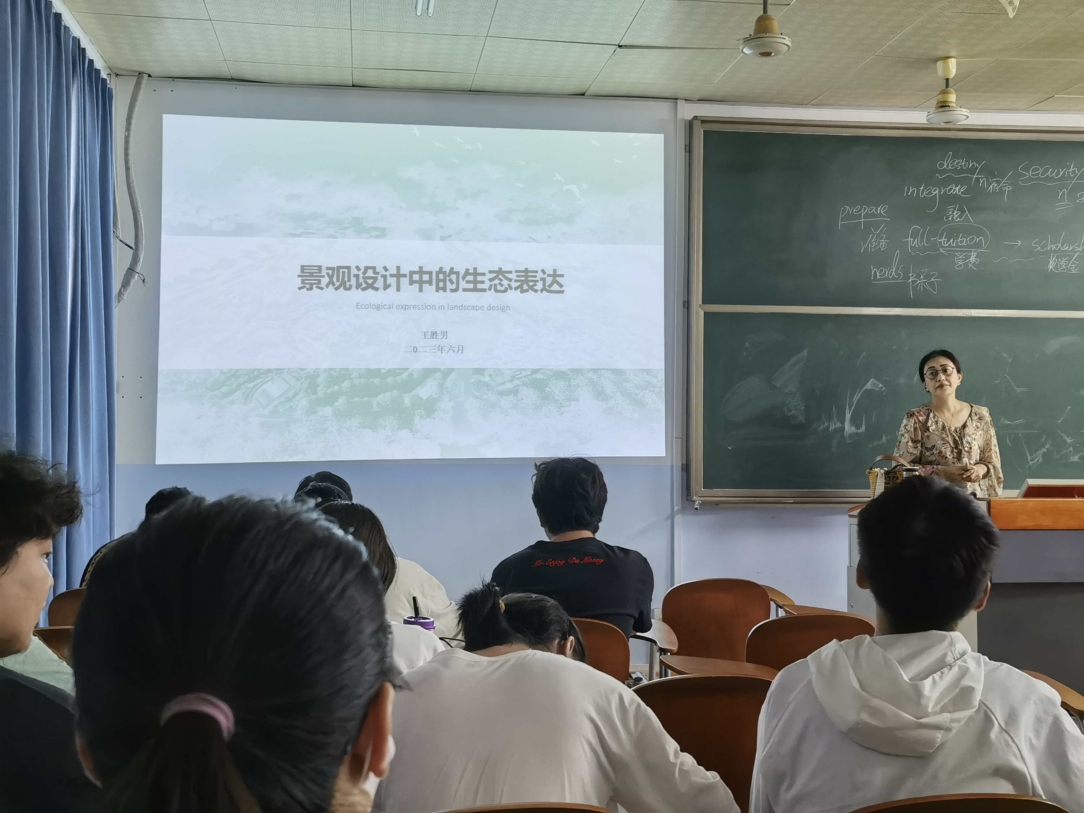 2023年6月15日下午三点于1中203教室,艺术暨国际设计学院王胜男教授面向风景园林2001班的学生举办了讲座。讲座的主题为《景观设计的生态表达》。风景园林专业与生态学知识息息相关,紧密交织,讲座的举办有利于园林专业的学生丰富专业知识,拓展设计思想,培养生态意识。