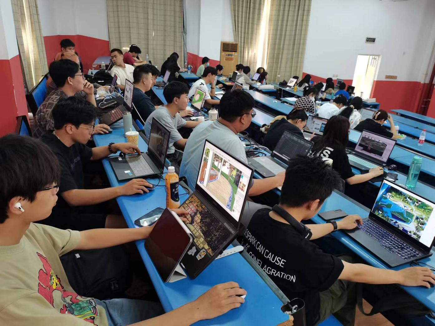图1-1实践课堂 学生在做建筑景观设计作业