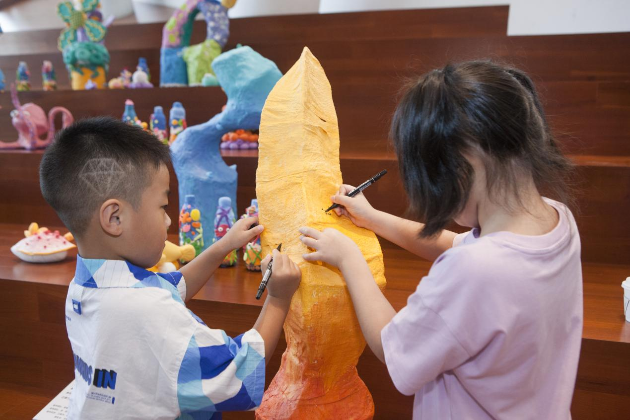 为给少儿艺术创作提供多维度展示平台,由三亚学院艺术学院暨国际设计学院与群众艺术馆共同协作的环保艺术装置创作活动于2023年7月2日正式开展。此次,为搭建群众文化艺术共享平台,发现和培育优秀的小艺术家,提升少年儿童的审美能力和创造力,助力海南自贸港群文发展,由海南省旅文厅指导,海南省群艺馆、三亚市旅文局主办,三亚市美术馆、三亚市群艺馆承办,各市县(区)群艺(文化)馆协办的2023年“美丽海南”全省少儿美术作品展在三亚市美术馆(三亚市群艺馆三楼)开展,共展出全省少儿美术作品100幅。同时,作为此次展览展示部分,三亚学院艺术学院暨国际设计学院与群众艺术馆共同协作的环保艺术装置创作同时开展。通过组织少儿、老师与艺术家共同完成6个环保主题的艺术装置作品,向广大市民群众宣传保护海洋、森林、湿地等生态环境的重要性,树立保护环境意识。此次展览推出的共创艺术装置公共教育活动,开创了省内美术展览的先河,之后将做为三亚市美术馆的品牌持续开展。