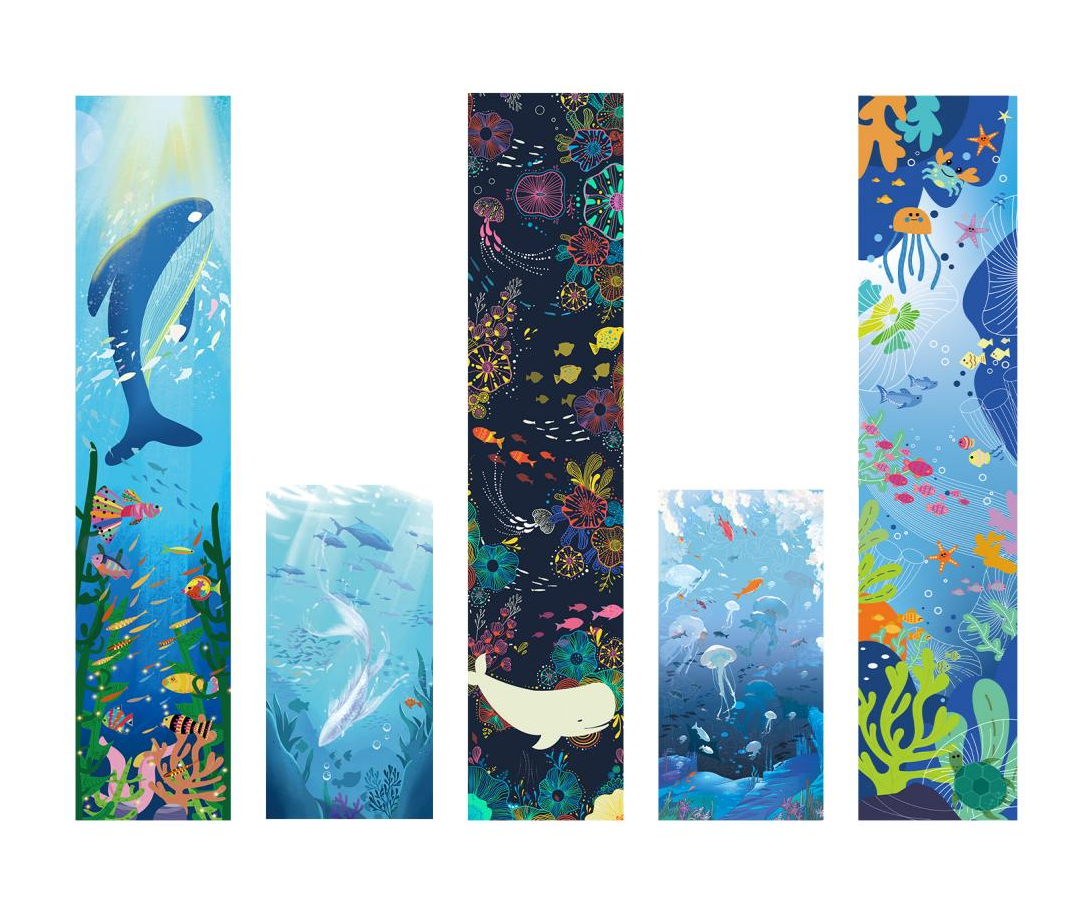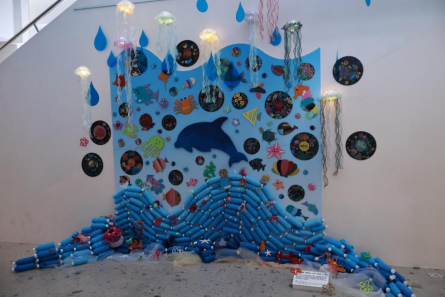 作品介绍:我们居住的星球是一个绚丽多彩的世界,陆地上拥有很多色彩缤纷的商品,海洋中有着许多色彩斑斓的生物。但当色彩缤纷的商品变成垃圾流入大海时,大海中的生物似乎失去了原本的色彩,而我们又该为它们做些什么呢?希望通对废弃塑料瓶及展板的二次创作,传递我们对海洋的关注和保护,提高人们对于海洋保护的意识,为大海增加新的色彩。
