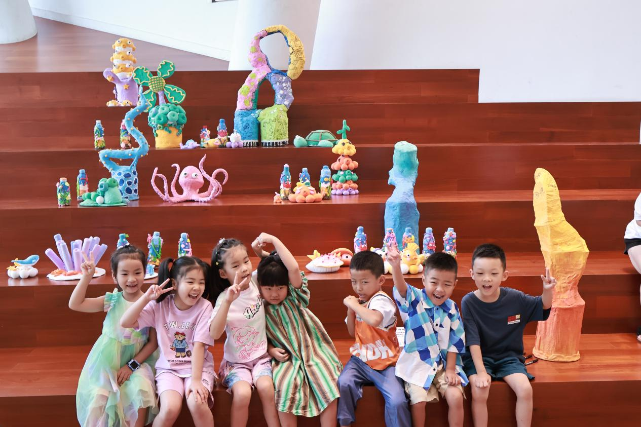 作品介绍:我们的灵感来自因污染而受到伤害的海洋动物。通过环保黏土和对塑料瓶的二次创作,做出一些怪异的海洋动物形状,来呼吁小朋友们保护海洋环境,为生态可持续贡献自己的力量。