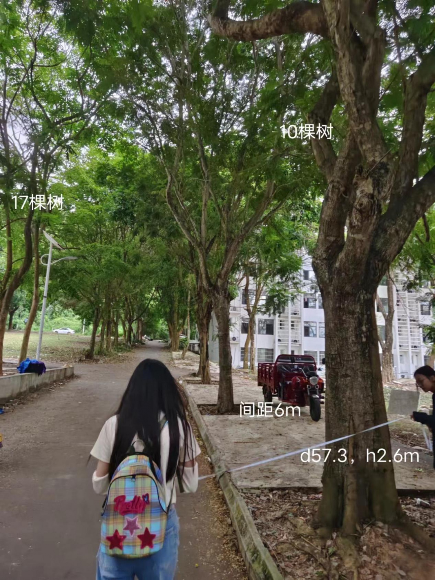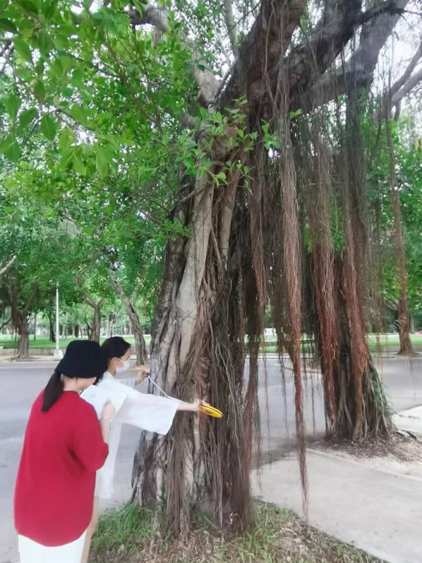 为了更好地理解和保护校园环境,自6月30日起,王宏信老师和郝梦媛老师带领风景园林2201班学生开展5天的校园植物实习调查。实习过程中,学生以小组为单位为三亚学院东校区以及的部分北校区中胸径20cm以上的树木进行了标记和记录,根据每棵树木的精确位置,制作了一份三亚学院校园树木的定位调查地图,将每棵树的树种、高度、树干直径、树冠直径等详细信息记录并绘制成图,为校园内每一棵树都量身定做了一份专属的“个人信息”。为未来的植物学研究和校园的绿化规划提供了详实的数据支持。