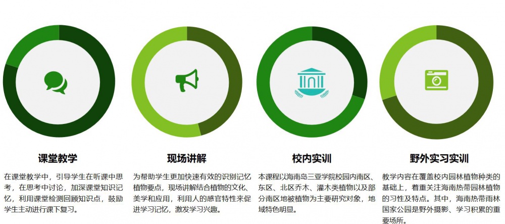 为提高学生的学习积极性,课程通过前期的课堂学习融合后期的校内实践形式来组织教学过程,使学生在步行中逐步观察、描绘、触摸、记忆身边的热带植物,从认知到欣赏,再到实践,最终领悟和了解热带植物的特性。