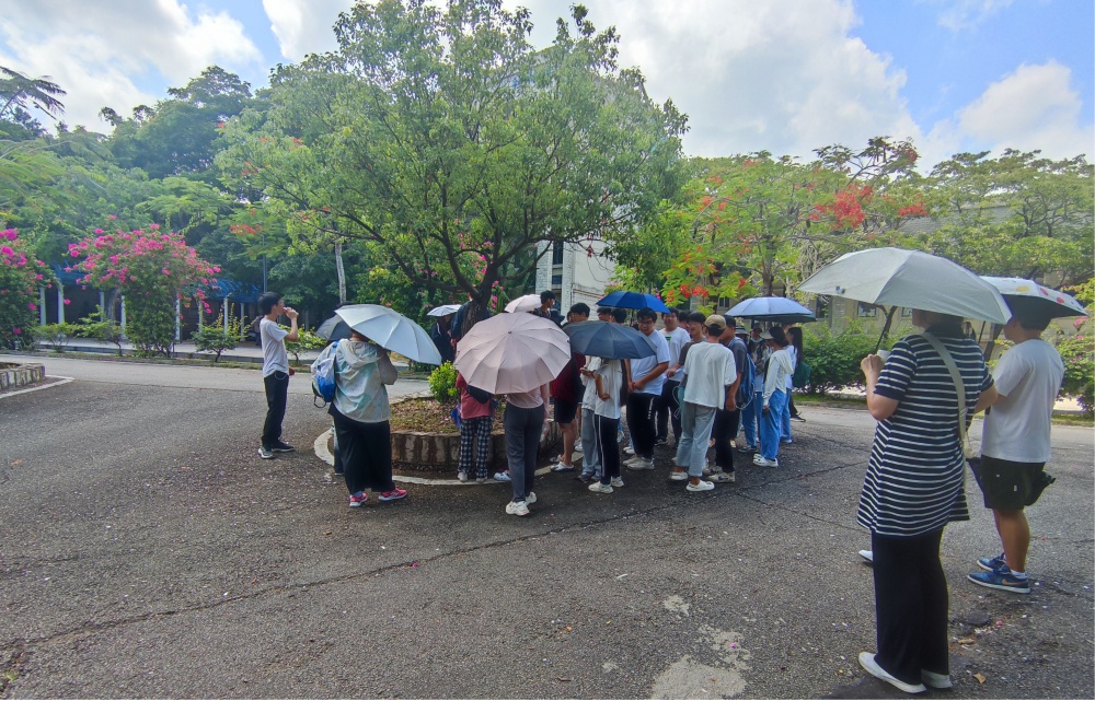在实际的课程实践环节中进行了野外考察和植物辨识实验。教师带领风景园林2101班学生在校园进行实地考察,观察和记录各种热带园林植物的特征和生境。