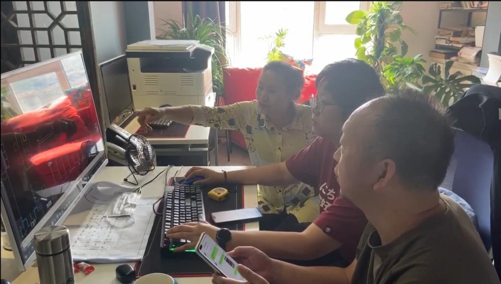 图3-冉旭老师与吉林省蓝水建筑装饰设计有限公司设计师研究设计方案