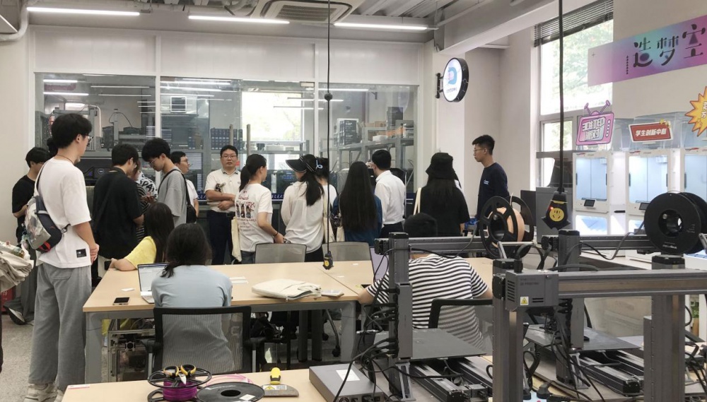 研学期间,胡洁教授还亲自带领全体研学团队参观了上海交通大学闵行校区校园,并深入到学生创新中心和部分实验室进行交流学习。