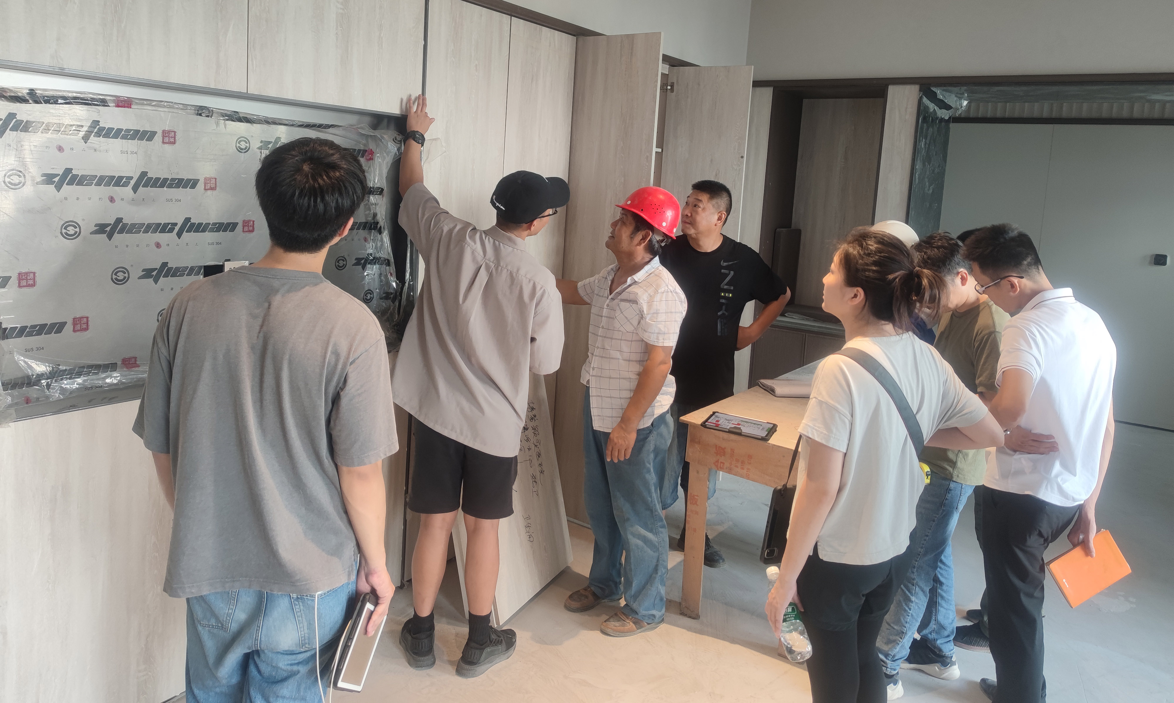 老师检查施工情况