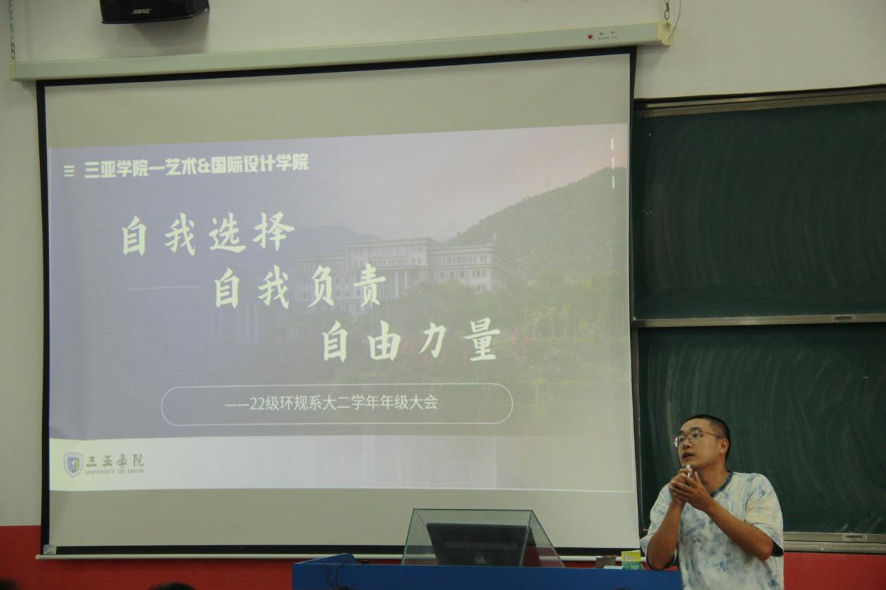 没有严肃正式的常规开场,白云导师用轻松幽默的“认人环节”拉开了年级大会的帷幕。从熟识每个人的姓名到了解每个人的不同特点,白云导师引领着大家回顾大一学年的不同体验,自我成长,自我经历。他认为大一学年最重要的就是“体验”二字,同学们在上一年里体验了新的生活方式,新的学习方式,新的思想模式,适应了校园生活,接下来的要务就是“明确目标”,学习目标,生活目标,从小到大,在解决问题里达成目标,得到成长。