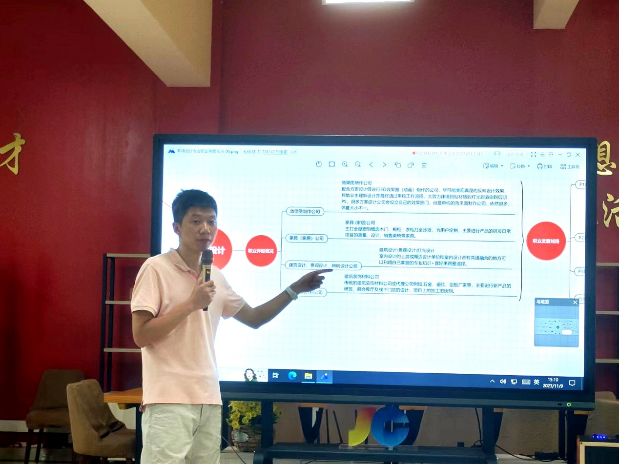 陈老师对施工管理、互联网加设计、技能培训、工装设计、其他设计、考研与出国、考公七个主体方向进行研讨,为同学们的大方向选择上对每一个步骤进行更为详细的解读,对就业“土壤”的挑选经验分享,分享不同的地域,公司的新人培养,公司前景等条件以便同学们就业更为细化的选择。