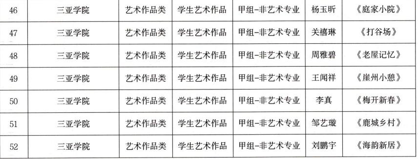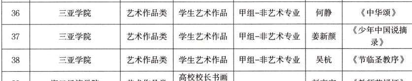 2023年11月24日,海南省第八届大学生艺术展演活动在海南师范大学图书馆和海南师范大学美术馆拉开帷幕。我院有10位学生的作品分别入围,其中书法作品3幅,绘画作品7幅。这些作品集中体现了我院艺术设计专业学生的造型素养及绘画功底。