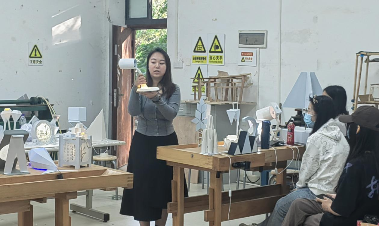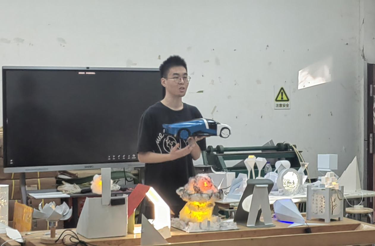讲座中还强调模型工艺不是单纯的手工制作和形态表现,难点在于从基本设计概念构思向实物模型的转换推敲,提倡学生对设计思维的充分表达以及对于形态材料的综合理解,提升设计的综合性动手实践能力,加深学生对于设计的内在逻辑理解。同时,希望同学要善于将设计问题进行归纳整理并以节点任务的形式展开,实体模型不是简单的工艺表现,更应注重语意传达与实物感知以及合理性推敲,在讲座环节结束后学生也分享了在模型制作过程中的心得体验,并树立了专业学习的信心。