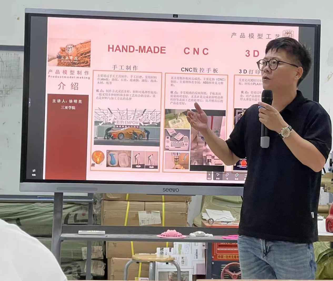 11月23日在材料与模型工艺课程结束后,基于课程中所反映的教学与学习问题,三亚学院国际设计学院徐明亮副教授在空间模型实验中心以《现代与传统模型工艺的区别以及对设计的影响》为题目为产品设计专业的学子举办了一场内容充实的学术讲座。