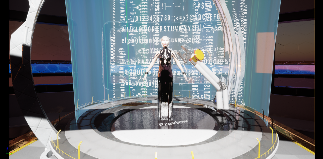 此次大秀的第一大亮点便是数字服装的首次亮相。李思诚和肖建国创作的《未来之城》是一款结合了AI与元宇宙的服装设计作品。作品以科技感和未来主题为灵感,通过数字化手段将AI与元宇宙的概念融入到服装设计中。以充满想象力的设计理念,勾勒出一个充满科技魅力的未来世界,在这个世界里,数字服装拥有无限的可能。