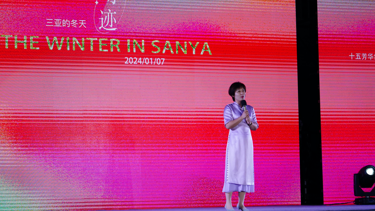 演出开始前,三亚学院艺术学院、国际设计学院执行副院长陈琳教授代表主办方致辞。她说到:“三亚的冬天”服装设计大赛作为三亚学院校级文化盛事,今年已经是第十五届了,十五年的坚持,已经让这场盛事超越了教学意义,成为我校的文化品牌。