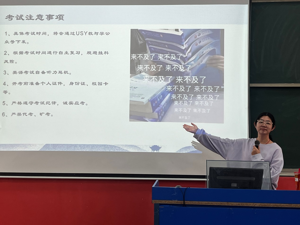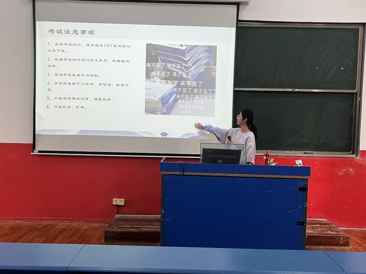 本次班会由考风考纪及考试周时间规划两个方面展开。“来不及了,来不及了”看似是思想导师ppt配图上戏谑的文案,实际上也反映出了同学们心中对于期末考试在即的紧迫感。本次班会思想导师通过引用校历卡、学生手册的相关内容,强调了考试的时间、要求以及处分规定等各项内容,在告诉同学们应当收心学习的同时,强调了考试的重要性和严肃性,加深同学们对于各项规定的印象。在当今社会,“诚信“无疑是一个人最重要的美好品质,遵守考风考纪,诚信应考也应当是当代大学生最基本的行为规范。思想导师不断强调各项规章制度,不仅是为了规劝同学们在接下来的时间里认真备考,同时也分析出了考试中出现不诚信行为会给同学们带来的危害,让同学们明白了作弊将会带来的一系列严重后果。