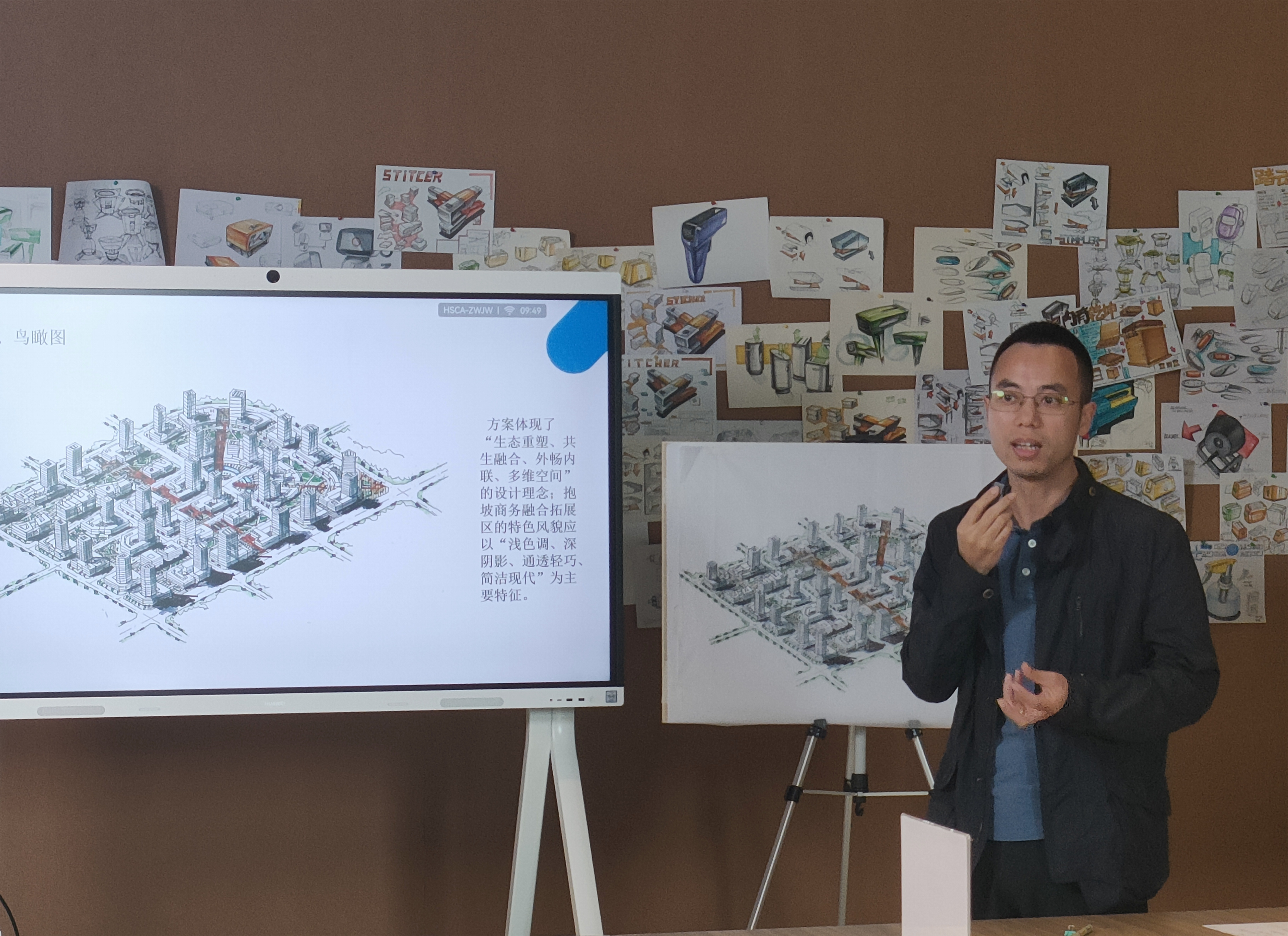 毕业设计是城乡规划专业人才培养计划的重要教学环节,是检验培养目标落实、提高培养质量的关键环节。为保证本科毕业设计质量,加强学习过程管理,2024年1月17日上午,我院城乡规划专业在艺术学院工业设计中心隆重举行了2024届毕业设计中期答辩会,全体毕业生参加了本次答辩。继去年城乡规划实践领域的资深行业专家参与毕业设计答辩的良好反响,今年我们更注重行业导师参与毕业设计指导的深度与广度,特邀请了海南回归建筑规划设计有限公司设计总监魏健军先生、中元国际(海南)工程设计研究院有限公司郑伟先生等资深行业专家提前介入毕业设计考核环节,以更好贯彻我校产品思维人才培养理念。