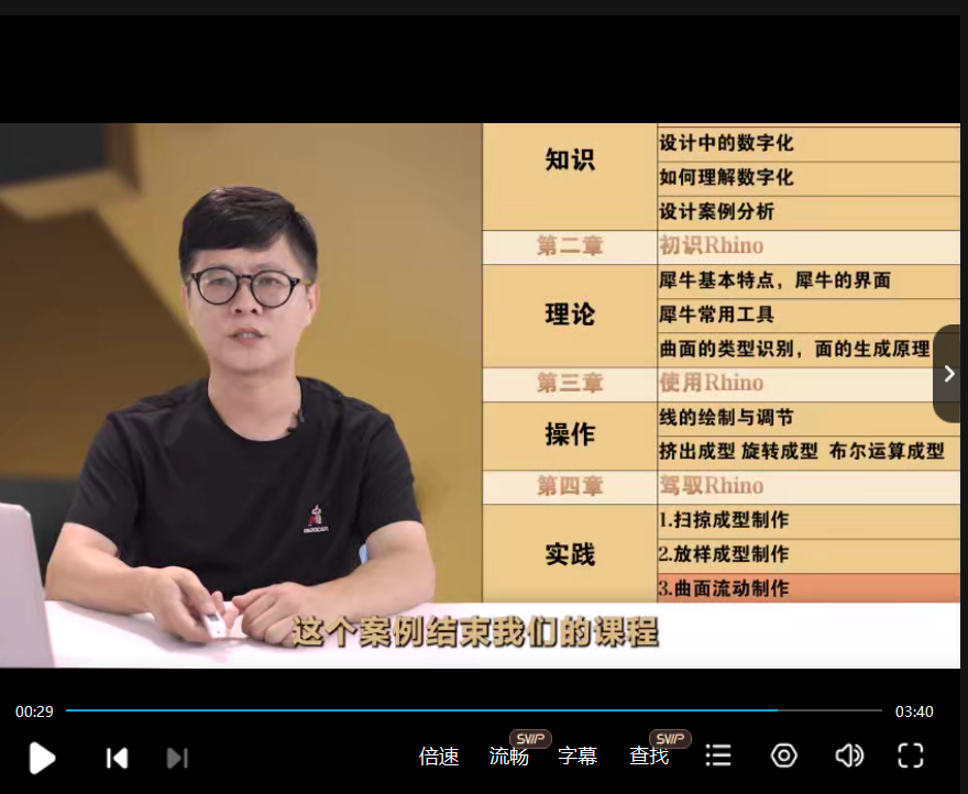 本学期,由产品设计专业徐明亮老师主持的数字课程建设《数位表达课程》顺利完成课程录制工作,共录制时长120分钟,并完成相关的数字平台建设。包括:1.数字化教学视频资料:数字化的理解、犀牛介绍与基本特点、犀牛的界面与基本操作、犀牛常用工具、曲面的类型识别、平直面,单曲面,双曲面成型原理、线的绘制与调节、挤出成型、旋转成型、布尔运算成型、扫掠成型、放样成型、曲面流动的相关案例讲解与操作演示;2.课程的相关数字化课程工具共享平台,包括Rhino和Keyshot的资源整理,网络资源教程,相关的插件程序;3.学生课程作业课作业共享平台:经过近三届同学的课程学习积累,已经形成了相关的课程作业分享与共享平台,学生可以通过该平台学习分享积累相关学习经验。