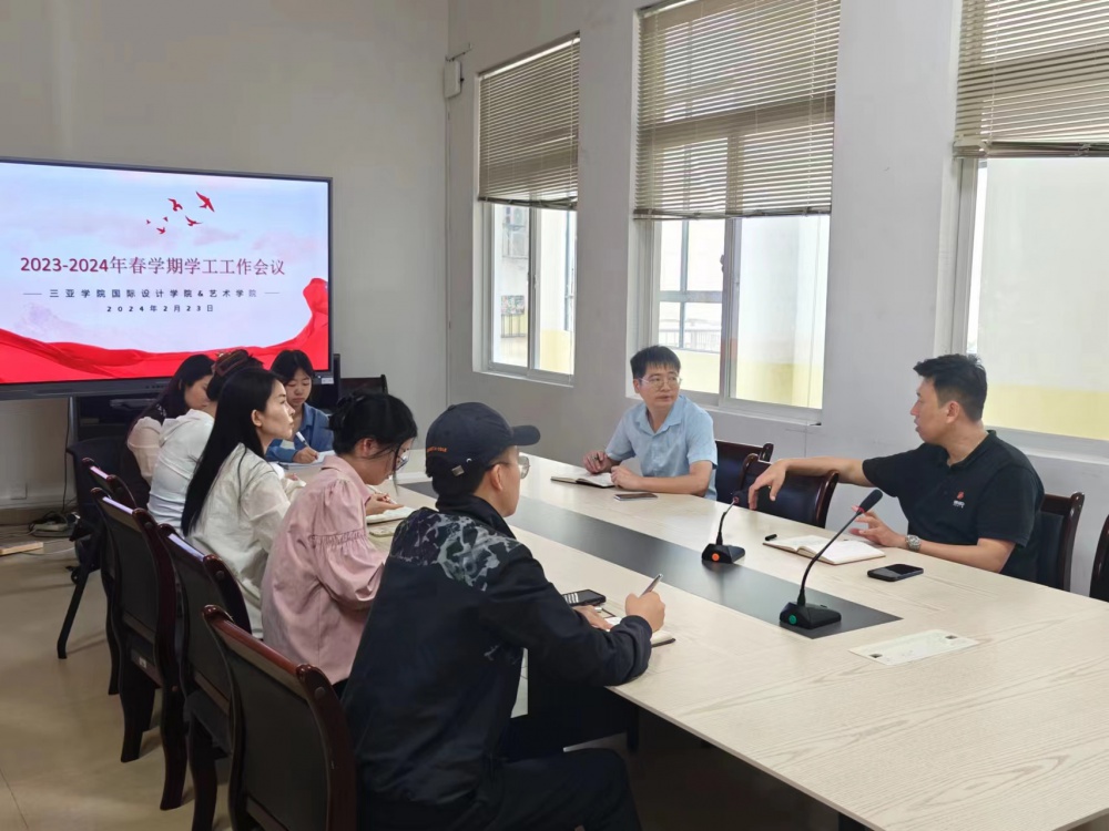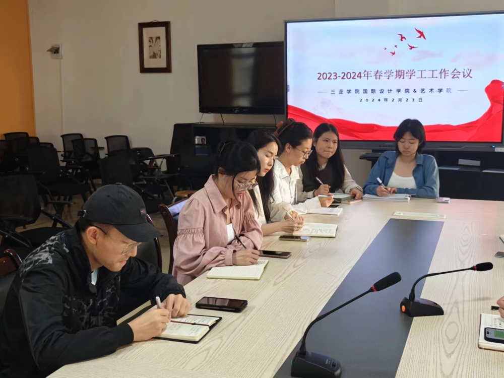 2024年2月23日艺术学院学工团队于书德楼三楼艺术学院会议室召开2024年春季学期开学准备工作会议,安排部署新学期开学工作。艺术学院党总支书记张鑫、团委副书记谢洪浪、团委副书记张誉丹以及艺术学院全体思想导师参加了会议。