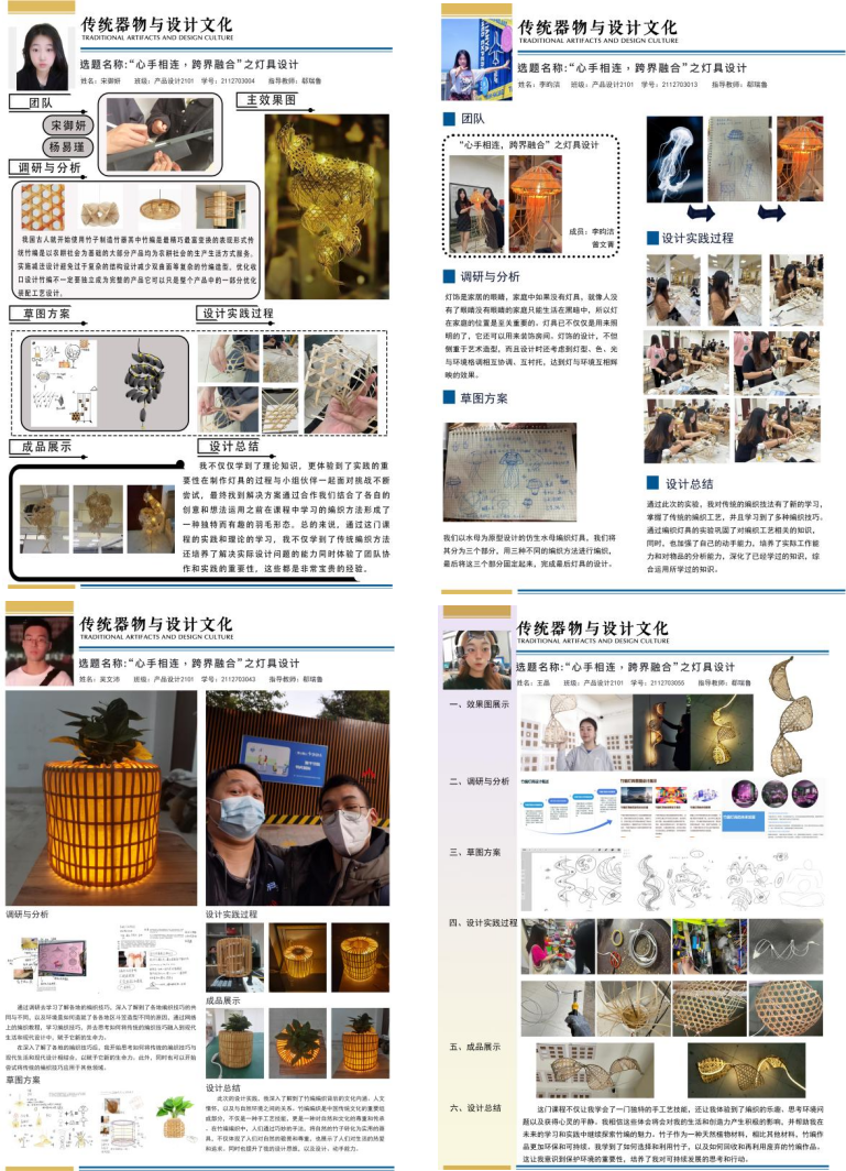 1.目标产品一:利用传统编织技法,利用藤篾材料完成十二个编织小样目标产品二:“心手相连、跨界融合”之灯具设计
