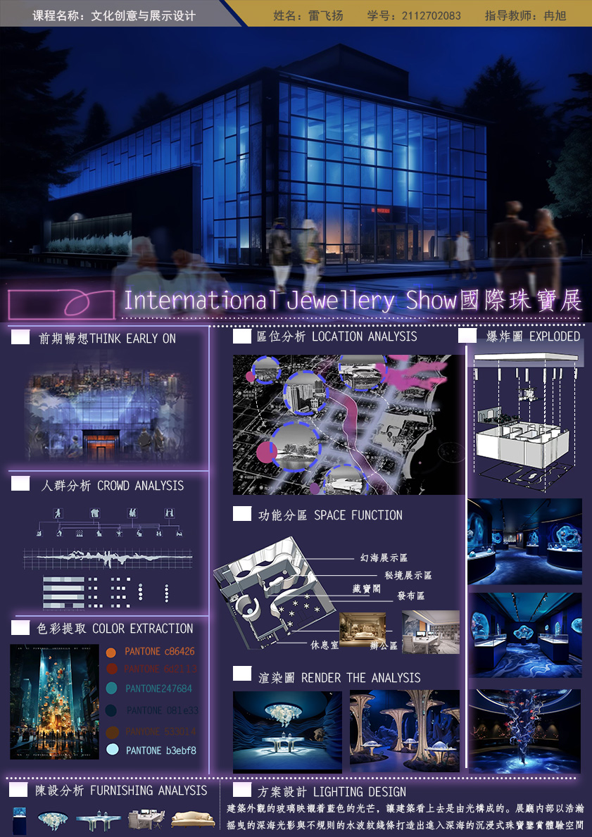 课程通过产教融合的方式,指导学生进行实地调研、实践探索,激发他们的创意灵感,培养他们在展示设计领域的创新能力,通过学生作品展示课程成果特色。作品不仅仅是单一的设计作品,还体现了学生对文化、历史、社会的深刻理解,并展现出独特的思维和审美观。
