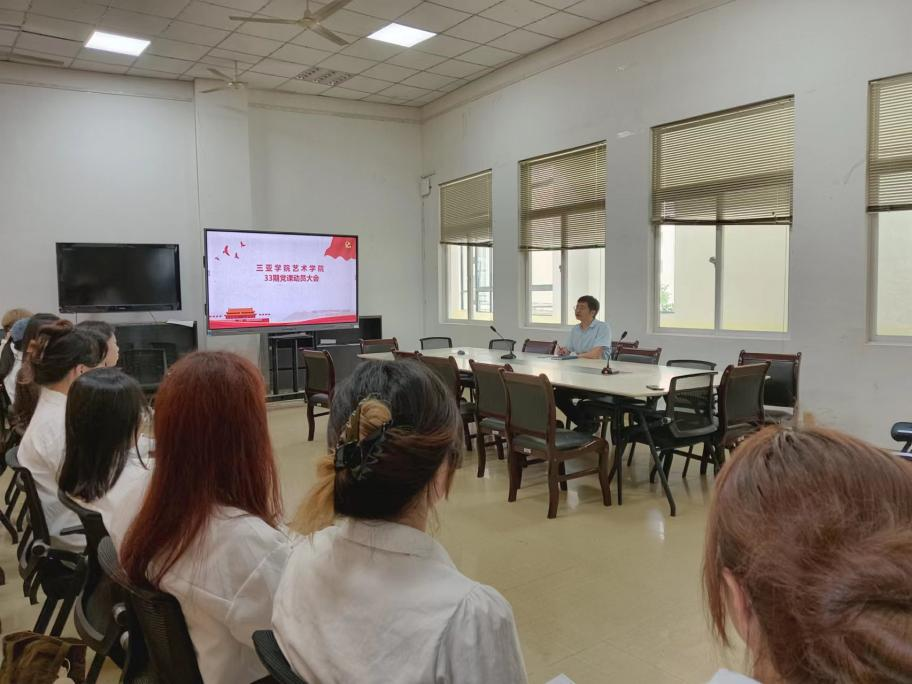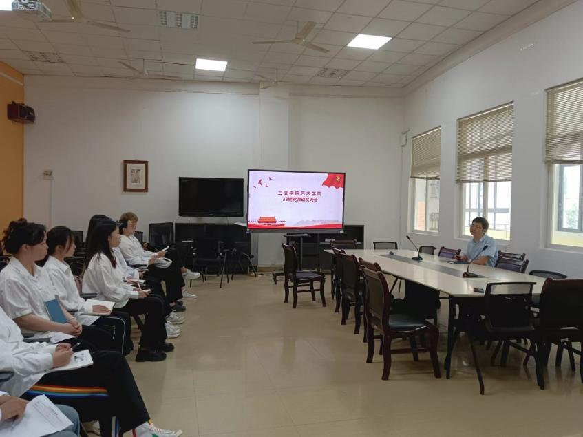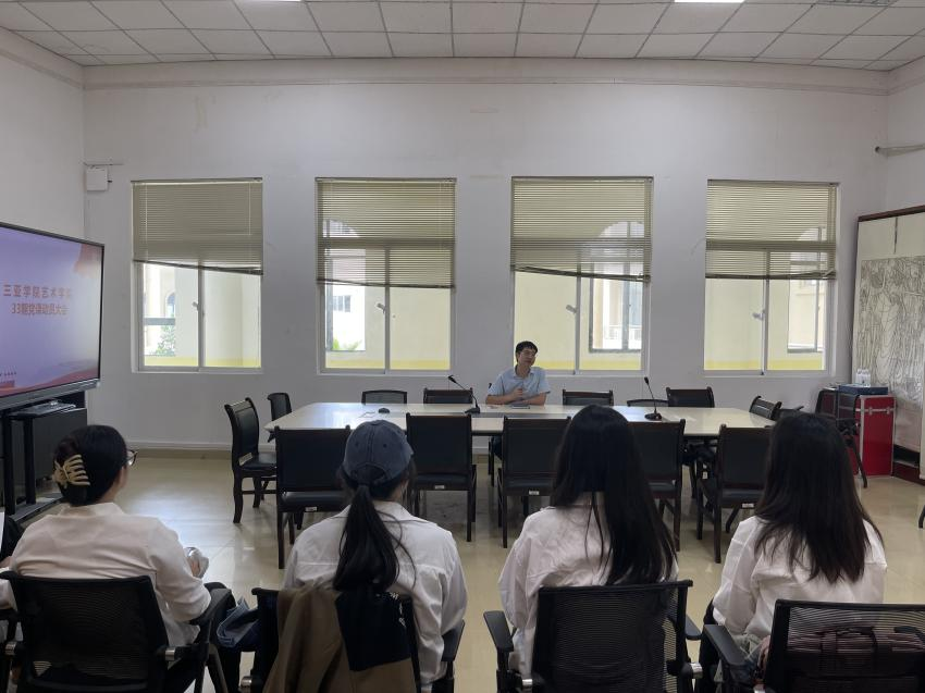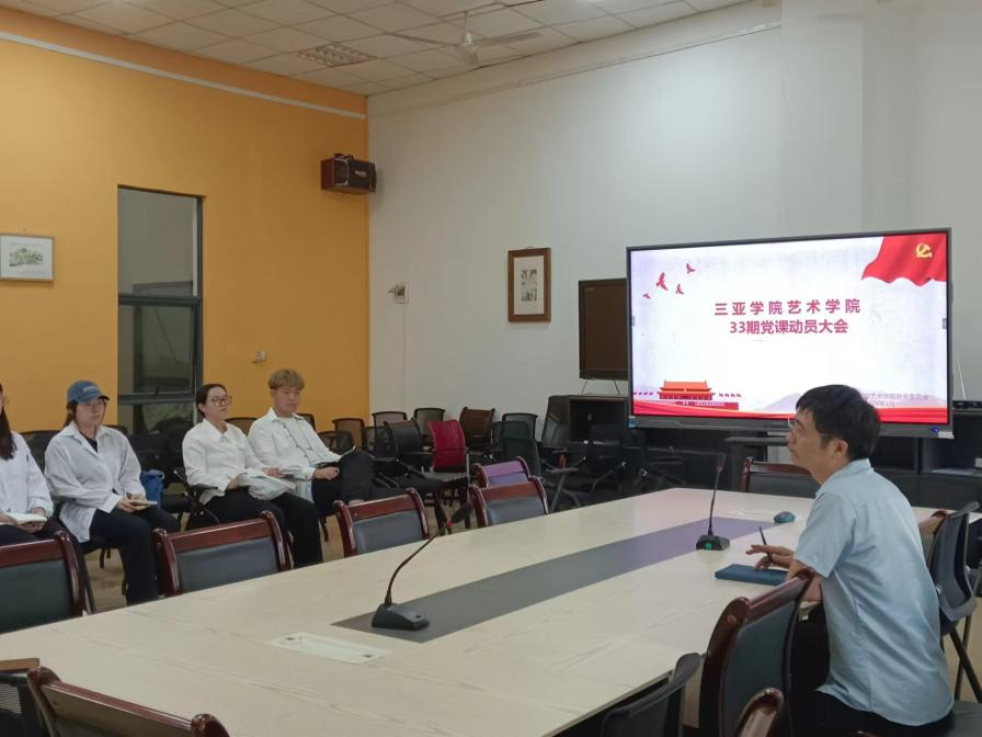 2024年3月26日上午,在书德楼三楼会议室召开了三亚学院艺术学院33期党课动员大会,参加此次会议的人员为三亚学院艺术学院学生党支部书记谢洪浪,学生组织部秘书长李泓毅与入党积极分子。