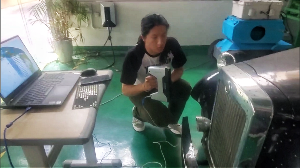 吉利人才•工业产品造型设计协同研究院项目:校园电动车造型改造,正在使用三维扫描仪进行车身逆向建模。
