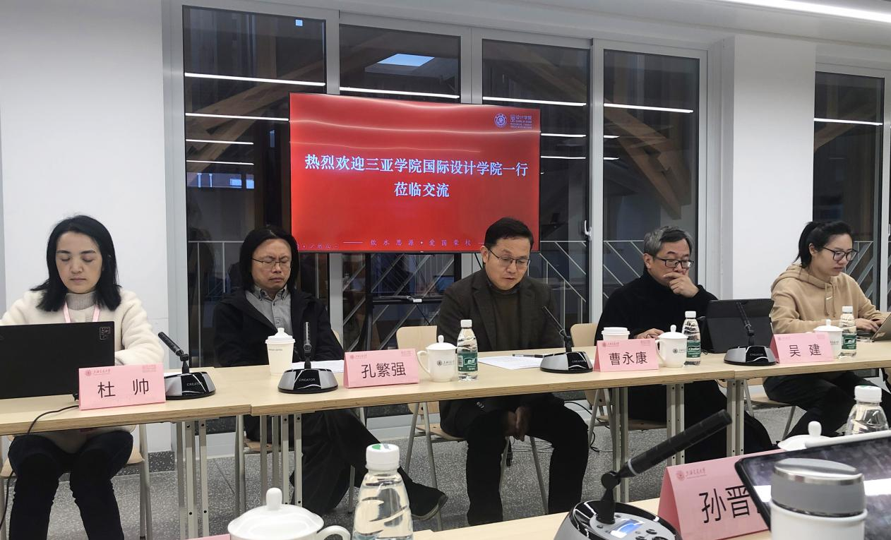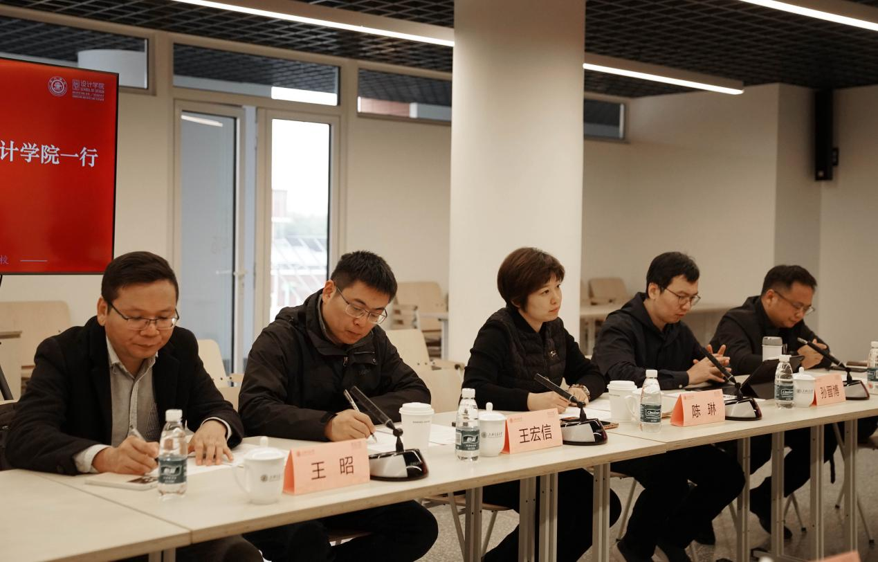 为继续深化我院学科建设改革、拓展产教融合发展思路,2024年3月28日,国际设计学院院长陈琳教授一行五人前往上海交通大学设计学院进行考察调研及学习交流。一起前往的有,国际设计学院副院长孙晋博副教授、校新文科发展处处长助理王宏信教授、视传专业负责人方超副教授及产品专业负责人王昭副教授。