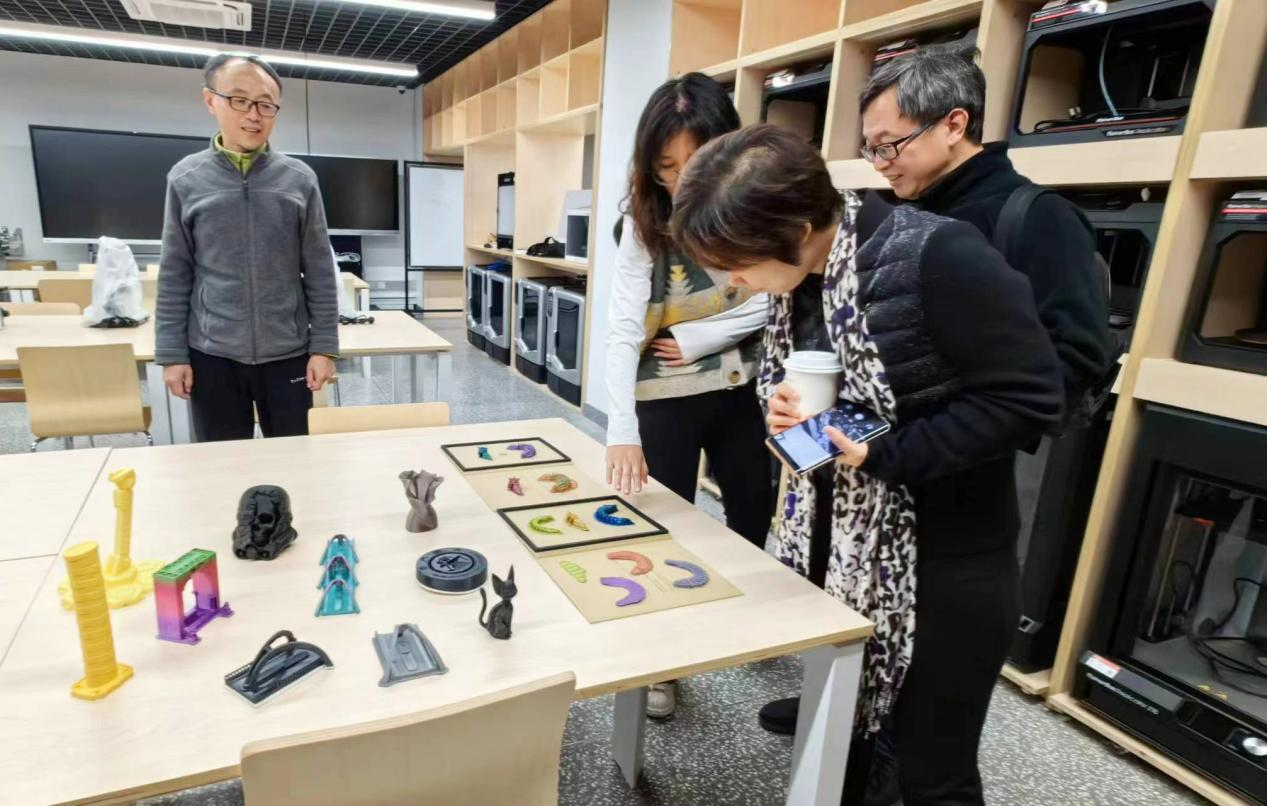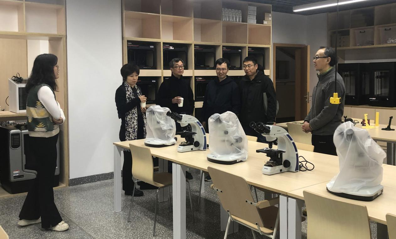 到达上海交大设计学院后,在工作人员的带领下,陈琳院长一行分别参观考察了设计学院各基础训练工坊和部分实验室,深入了解了设计工作坊和实验室建设现状。