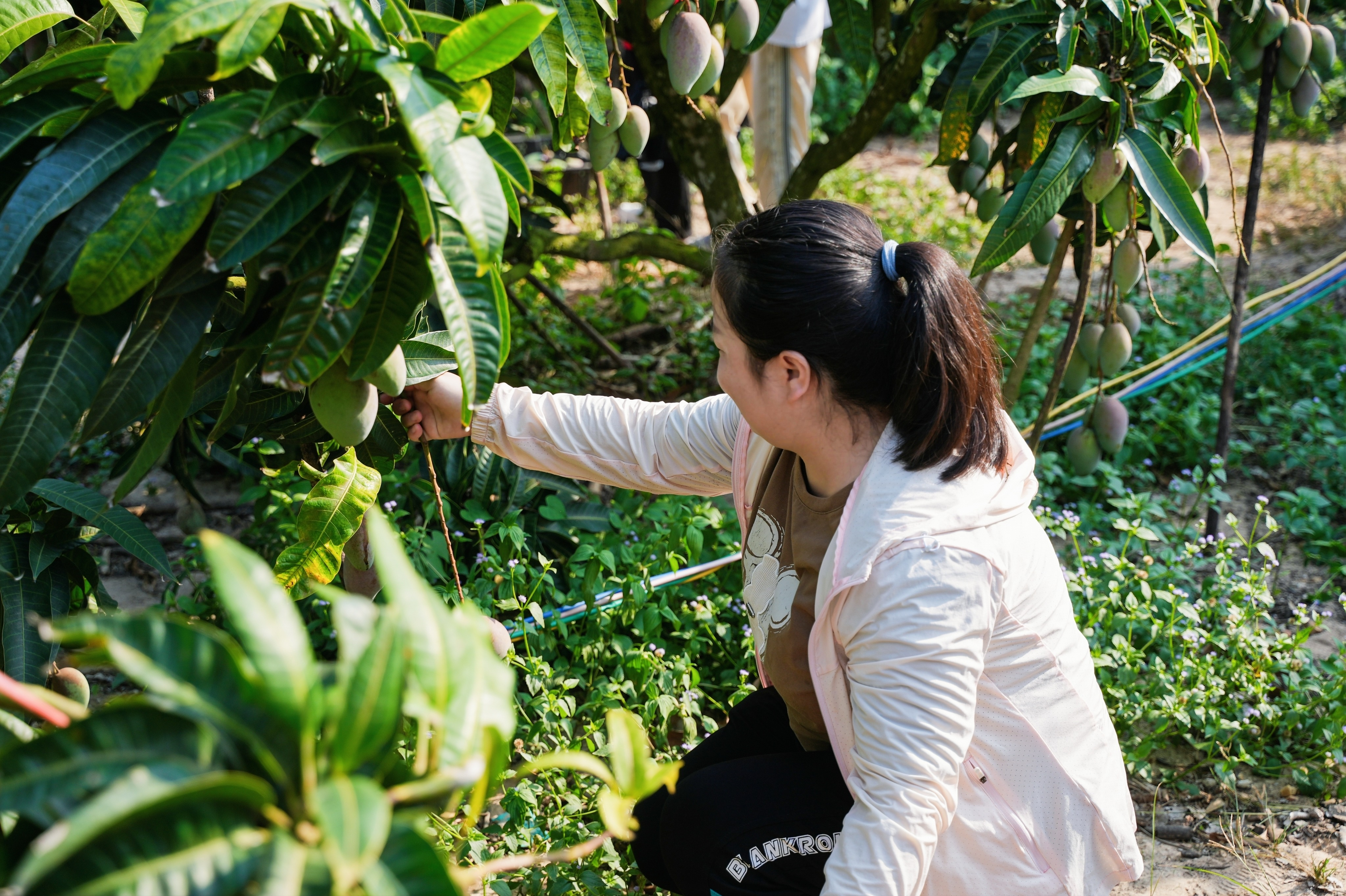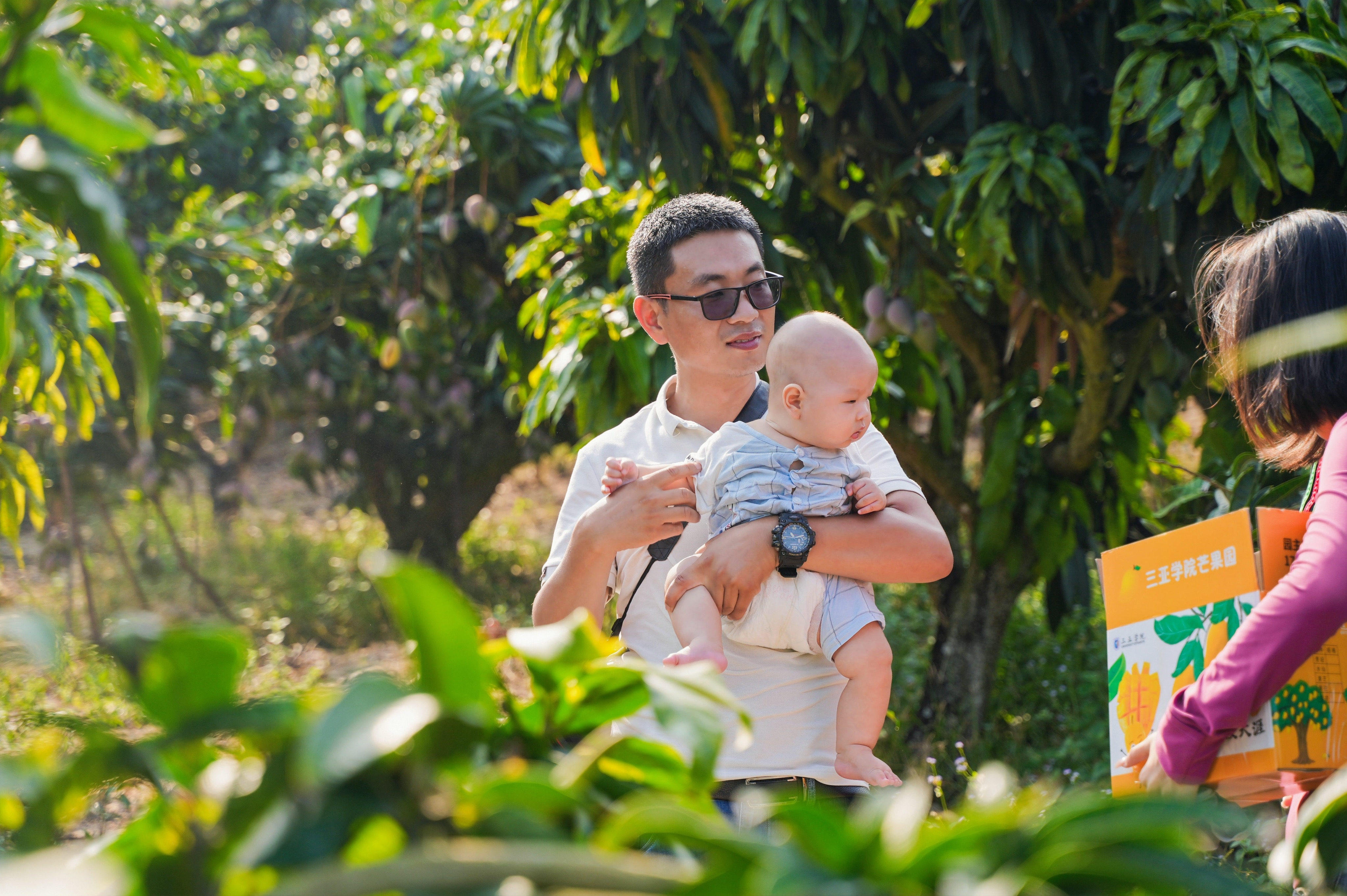 在采摘活动中,各院的师生与往日校友深入后山,在后山果园中开展现场采摘芒果活动。一个个芒果悬挂于枝头,一片片果林承载着丰收,大家摘下芒果,分享喜悦,同时,也记录和直播着第一份芒果礼盒的打包、邮寄、分箱和寄送全过程。青中透红的芒果分散于各路人手中,这份馈赠或许不仅来自于这片果园,也是一份独属于三亚学院的温暖。