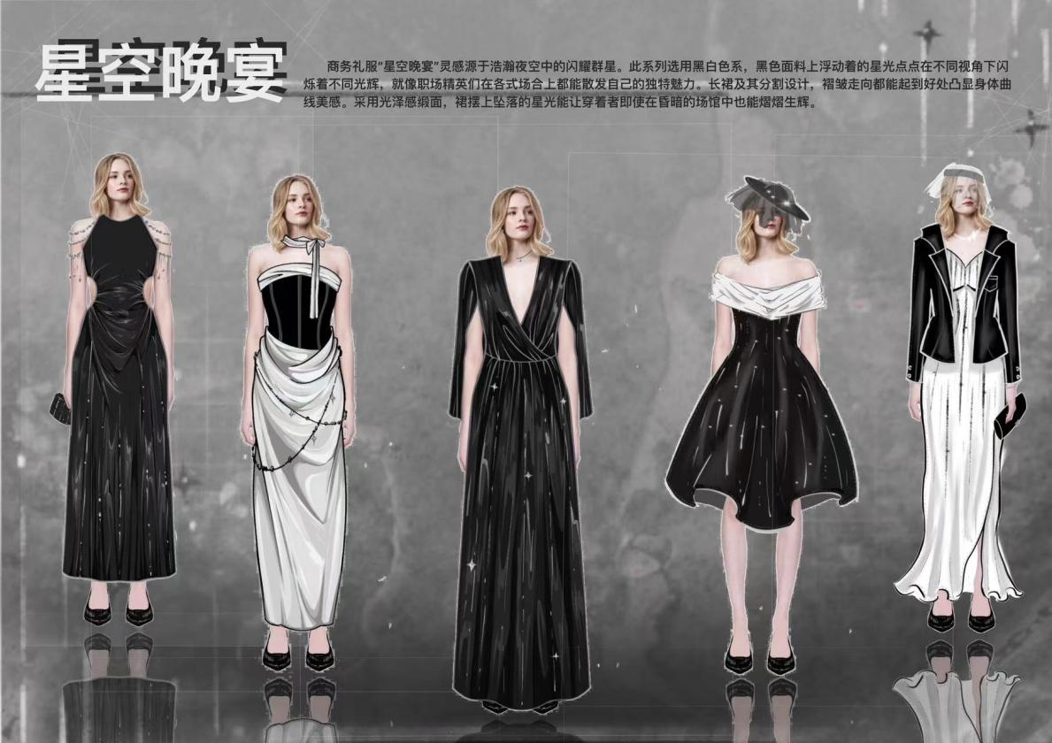 我院服装与服饰设计专业一直专注于应用型人才培养,注重产教融合设计项目落地,通过组织学生参加校内“三亚的冬天”和校外的服装设计大赛项目,“以赛促教,以赛促学”,在设计作品实物落地的过程中不仅能够培养学生的实际应用能力和创新精神,而且通过比赛的考查,学生能充分展示自己在实践操作、团队合作和项目创新等方面的能力。这种综合性的考核能够促使学生在实际应用中提高自己的技能,培养解决问题和创新思维的能力。