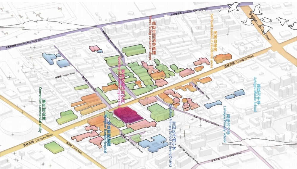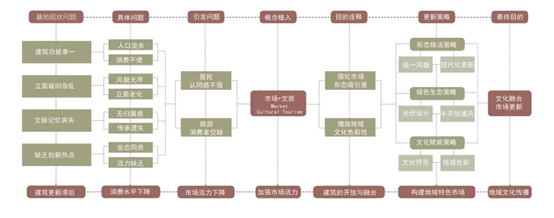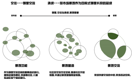 在服务公众需求的前提下,建立与城市紧密连接城市可识别性高、流线清晰、开放时间较长,采用自然采光和通风的社区 相邻市场。 通过特定设计的空间环境触发频繁交流、相遇机会,增加邻里交往的公共空间,解决现存问题,考虑消费者需求,具备开放性原则,使市场内部通道整体贯穿,在功能区域中共享渗透,室内外不做完全封闭空间,保持开放状态,吸引周围人群融入 集体,更多的考虑人与人、人与群体的信息交流共享
