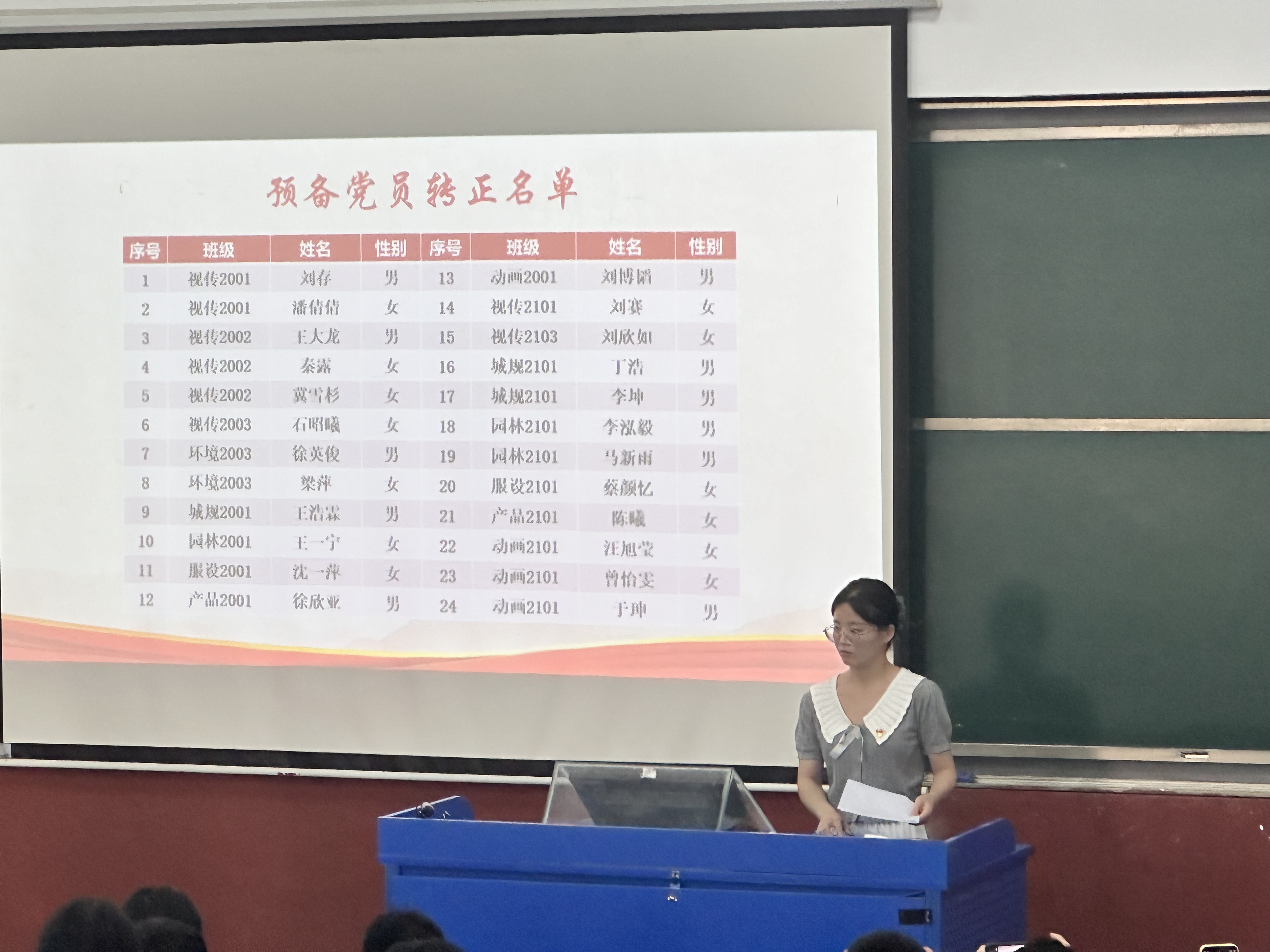 三亚学院艺术学院学生党支部宣传委员李青霞老师宣读接受预备党员名单。
