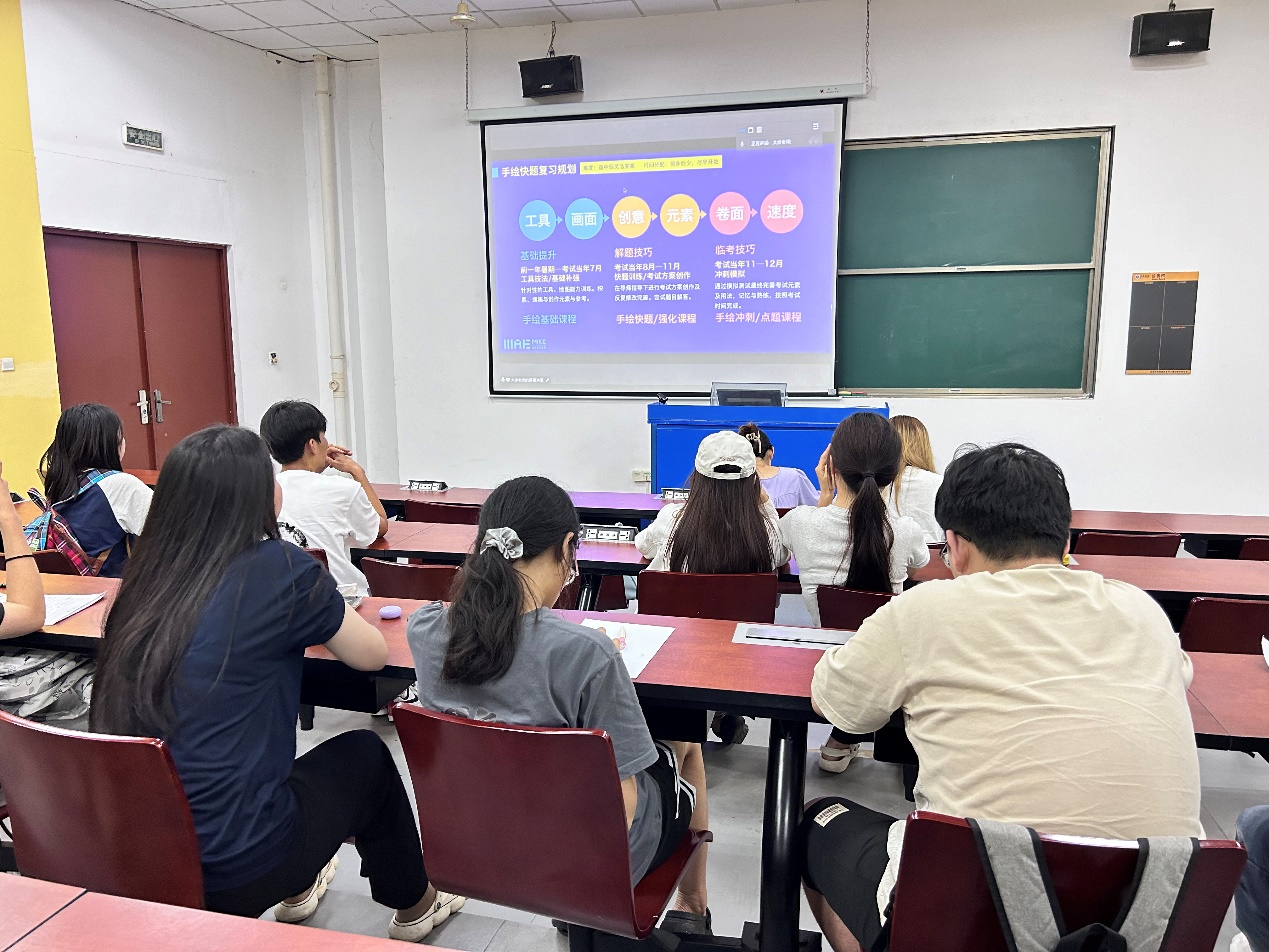 2024年5月22日,艺术暨国际设计学院在书德楼111室举办了考研分享会。此次考研分享会不仅有今年考研成功上岸的三位学姐现场为大家带来她们的宝贵备考经验,还有助力无数学子考研成功的陈老师直播连线来为同学们分享宝贵的备考与快题考试技巧。此次考研分享会气氛和谐融洽,现场的同学们受益匪浅。