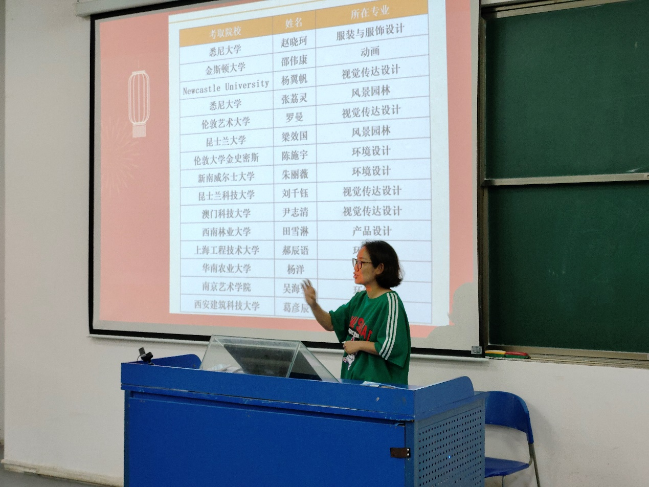 产品设计专业2001田雪淋、风景园林专业2001葛彦辰、环境设计专业2002吴海莹三位成功上岸的优秀毕业生代表分享了自己的考研经验和心得。他们分别从备考计划、时间管理、复习方法、心态调整等方面进行了详细的介绍。葛彦辰学姐以“为什么要考研”为题,从当前“就业形势”“考研能够给我们带来什么?”和“个人考研心得体会”三个方面和学弟学妹们进行了分享,她勉励同学们要自己把握自己的命运,努力抓住机遇,实现自我的提升。田雪淋学姐为学弟学妹就考研A区和B区院校的差别、重点院校和双非院校的各自要求和条件等进行了分析,并就如何从对“第一志愿录取比”“历年招生人数变化曲线”等信息的研究,理性选择报考院校,给同学们传授了宝贵经验。吴海莹学姐建议大三同学复习时期一定要打好基础,不要堆积问题。同时要注意学习效率,不要假努力,灵活备考,发现问题,及时调整。在交流环节,同学们踊跃提问,学姐们的解答耐心细致而又风趣幽默,现场氛围热烈而温馨,大家相互学习、共同进步。同学们表示分享会非常有意义,对自己有很大的启发。