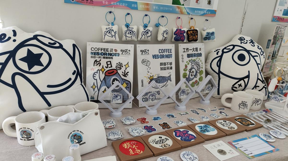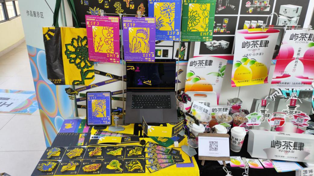 现场展示作品类型涵盖文旅文创品设计、系列包装设计、品牌形象设计、动态媒体设计、海报设计、插画设计、信息可视化设计、装饰艺术设计等,种类丰富多样,主题鲜明,创意突出,既有主流设计表现题材,也有结合当代新媒体技术,运用动态、交互等综合艺术表现的作品,增强了展示效果和体验感。