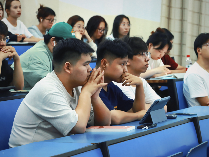 在师生交流环节中,学生们根据自己的毕业设计方向提出了设计过程中遇到的难点及困惑,吴教授逐一解答,提供了许多宝贵意见,学生们仔细聆听、热情回应,纷纷表示受益匪浅。吴教授还鼓励学生们多方向努力,通过实际项目锻炼自己,坚持自己的方向,大胆尝试。