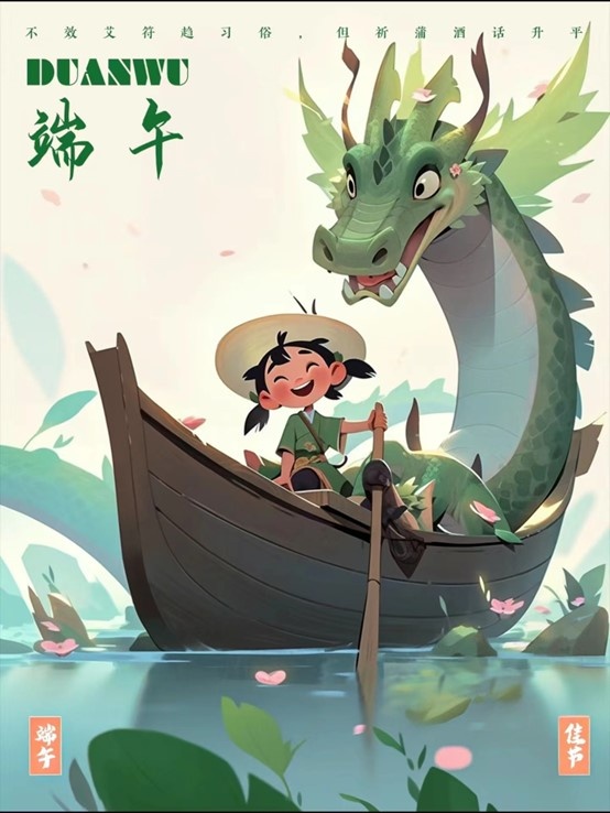 “五月五日午,赠我一枝艾。”端午节,又称端阳节、龙舟节,是中国传统节日之一,通常在农历五月初五庆祝。这个节日的起源有多种说法,其中最广为接受的是纪念屈原说。屈原是战国时期楚国的忠臣,因直言进谏而被贬,最终在五月初五投汨罗江自尽。据传,当地百姓划船去救他,后来发展成为赛龙舟的习俗。同时,人们为了防止鱼虾吃掉屈原的身体,投入粽子到江中,这也成为了吃粽子的传统。