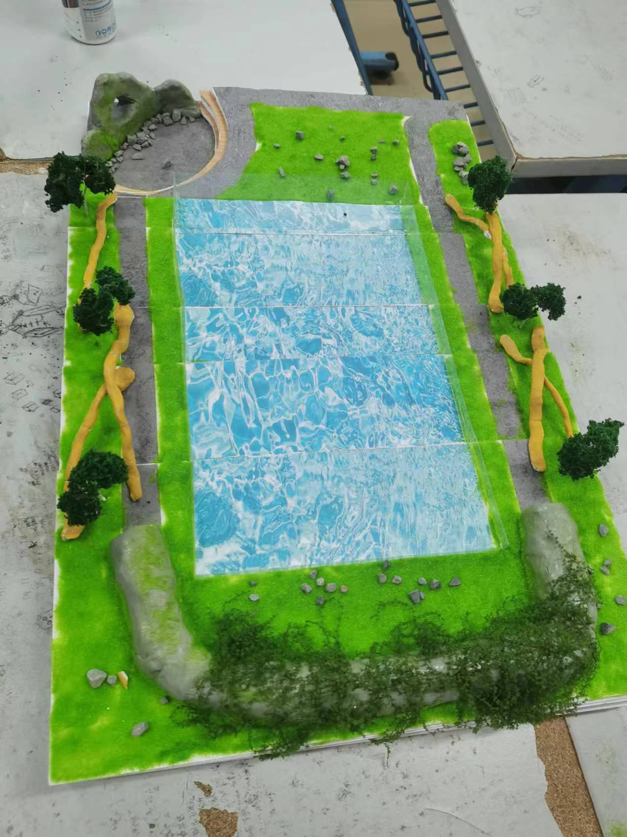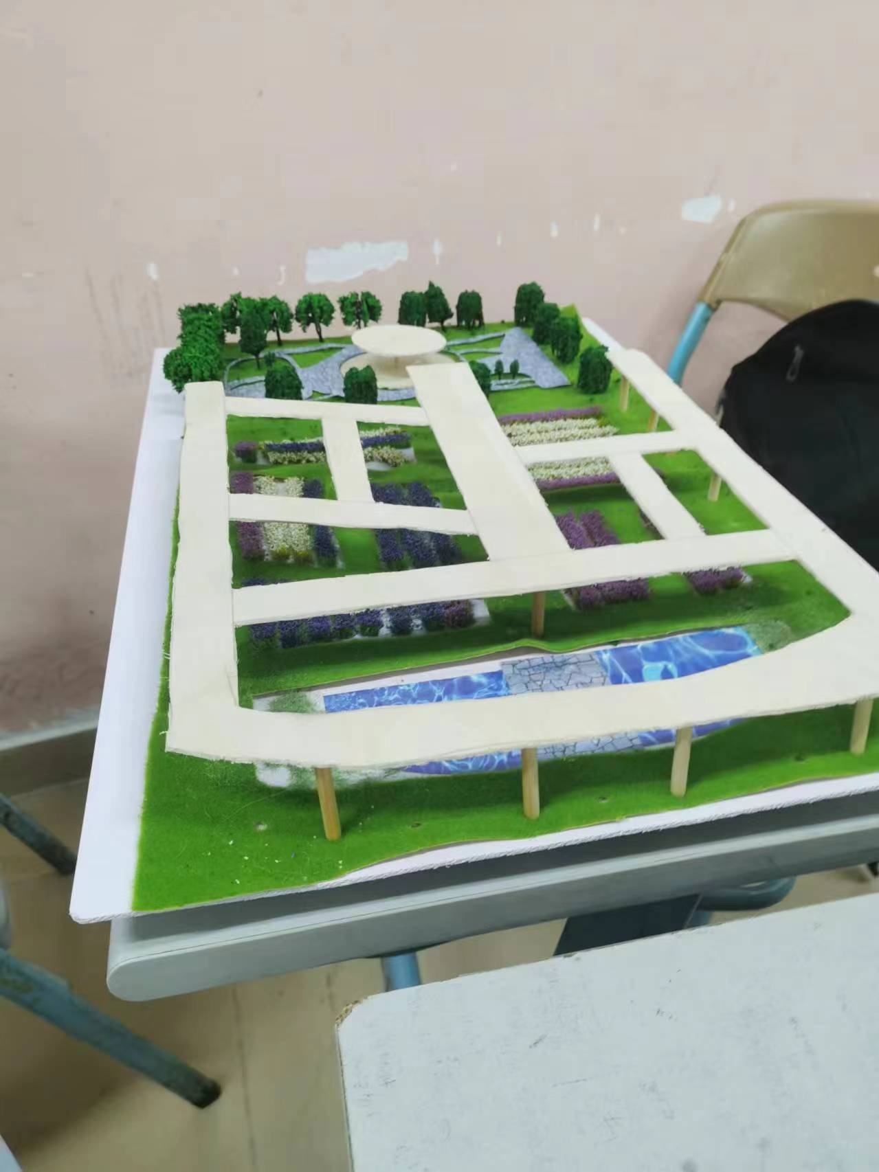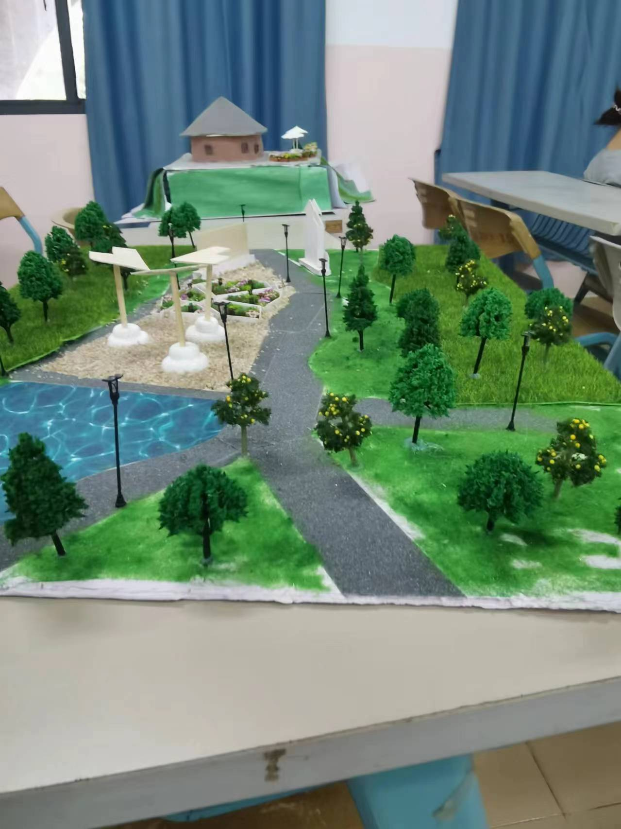 在终期深化设计与表现效果阶段,我们要求学生进一步深化设计,完善景观分析、等内容,并制作效果图、展板和实物模型等成果展示。此阶段的教学重点是培养学生的设计表达能力和创新思维能力,使学生能够将设计思路转化为具体的设计成果。