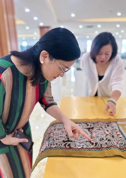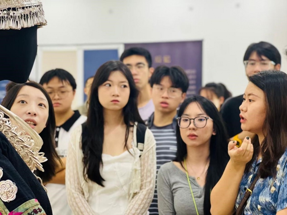 在讲解老师的深情引领下,学生们仿佛穿越时空,走进了少数民族手工艺的斑斓世界,亲身感受了技与美、古与今的完美交融。展览现场,每一件作品都像是精心雕琢的艺术品,它们不仅承载着少数民族深厚的文化底蕴,更凝聚了手工艺人世代相传的智慧与匠心。从细腻的刺绣到繁复的织锦,从神秘的蜡染到璀璨的银饰,学生们在近距离的观赏中,被这些传统技艺的精湛与独特深深吸引。