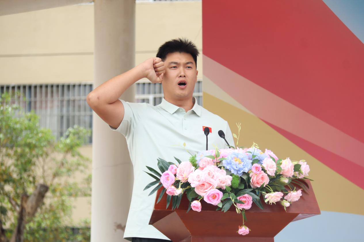 在庄严肃穆的操场上,晨曦初照,身着制服的护旗手迈着整齐有力、掷地有声的正步走向旗杆,他们身姿挺拔,目光坚毅。国歌奏响的刹那,升旗手潇洒地扬手,五星红旗迎风展开、徐徐上升。全体师生肃穆而立,行注目礼。