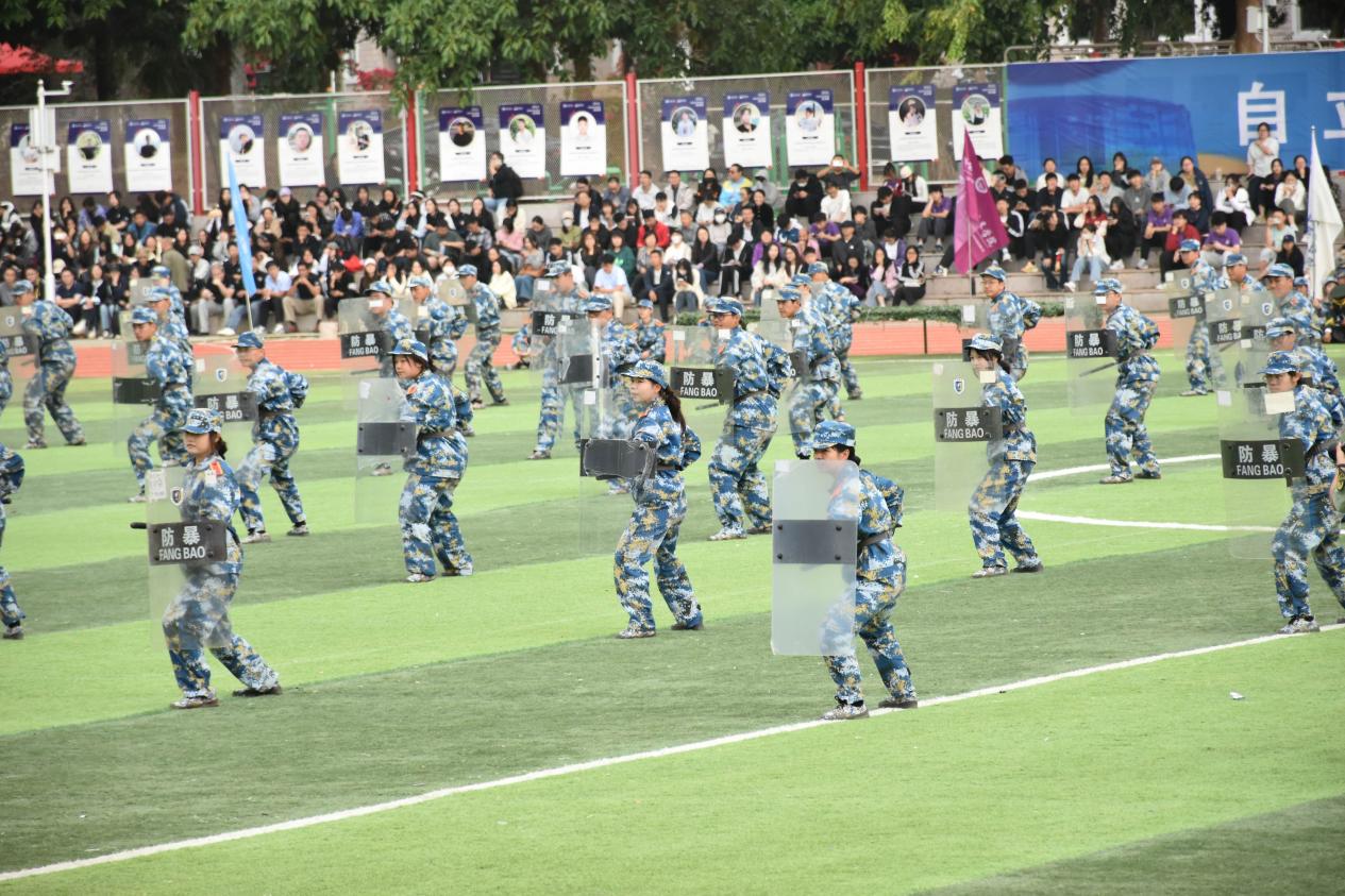 在历经数日的艰苦磨砺后,军训项目组的同学们终于迎来了属于他们的高光时刻,绽放出令人瞩目的最终风采。会操场上,他们展示了英姿飒爽的精神面貌,柔刚并济的使用一招一式,尽显军人风姿。随着一声令下,他们以高度的团队凝聚力与协作精神,将此次军训汇演推向另一高潮。