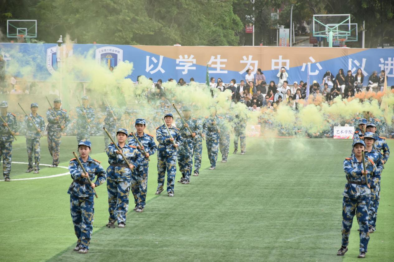 随时紧张严肃的军训汇报告一段落,体育欢乐节隆重开幕。银鞍照白马,飒沓如流星,期待艺术暨国际设计学院的同学们在体育欢乐节中展现自我风采,挥洒青春的汗水!