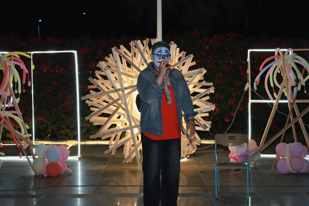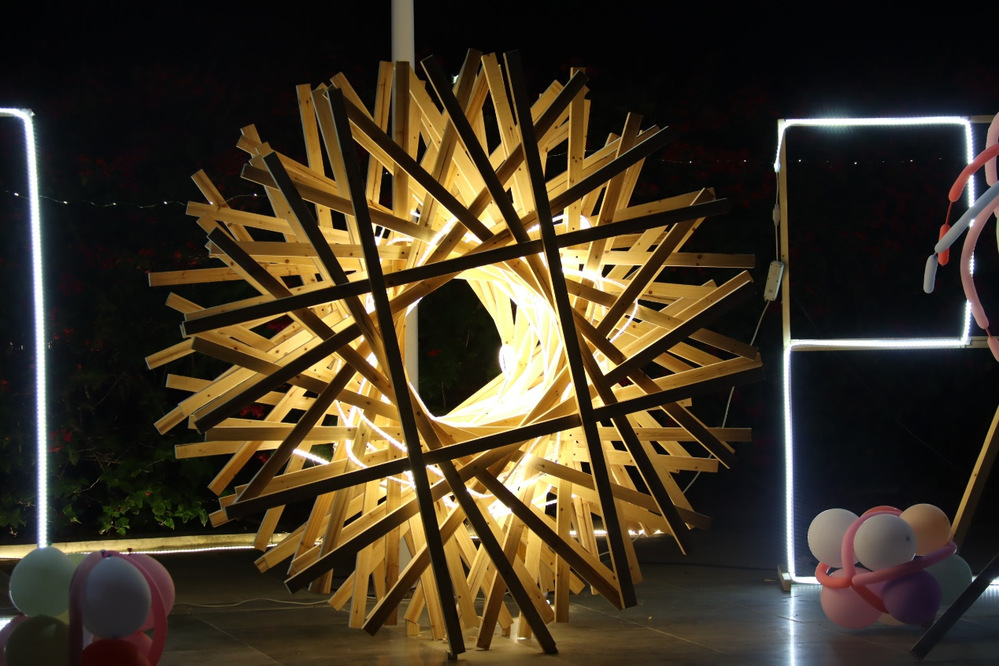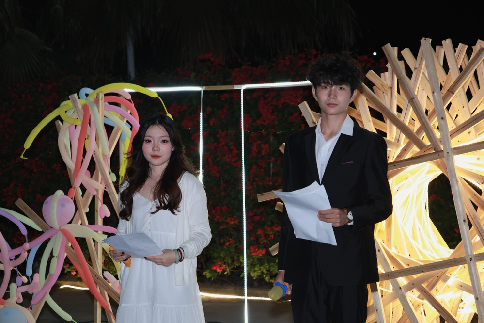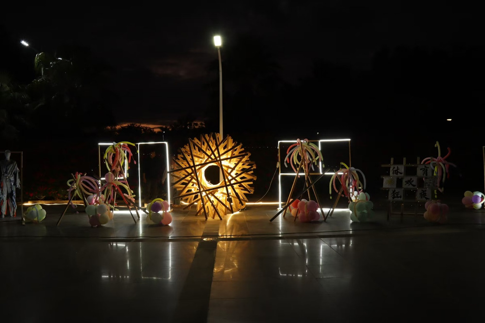 2024年12月27日傍晚,于书德楼广场西侧由艺术暨国际设计学院举办的体育狂欢夜火热展开。本次体育狂欢夜在学校领导的大力支持和我院师生的精心策划下,旨在弘扬体育精神,丰富校园文化生活,促进师生间的交流与互动,展现当代大学生的青春风采和蓬勃。此次我院体育狂欢夜的特殊“舞台“更是由我院城乡规划专业学生完成搭建,其中用冷暖色灯带与彩色卡纸等材料做点缀,展现出了独特的视觉效果,体现创新与学院产教结合的特色精神风貌,更是展现了艺术人独有的浪漫情怀。