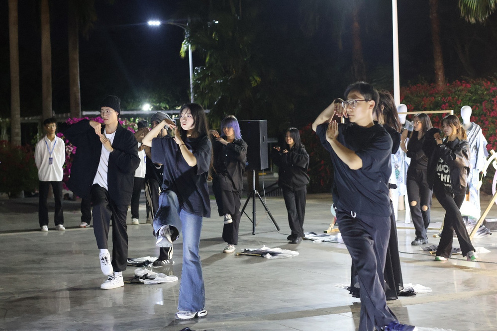 伴随着音乐,舞者翩翩起舞,每个动作都赋予情感,舞姿曼妙。齐舞整齐划一,处处洋溢着大学生的青春洋溢。