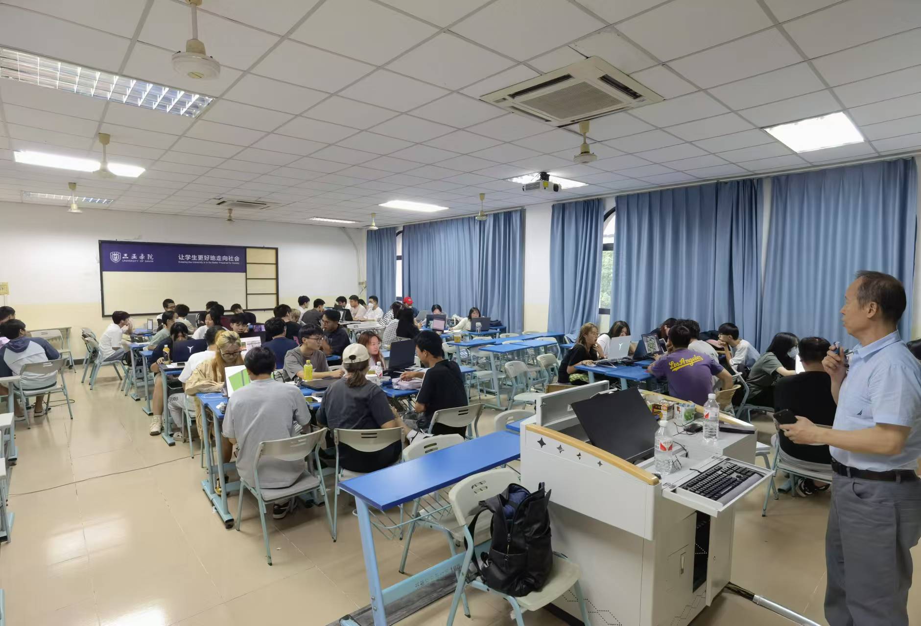 本课程的规划设计实践充分践行了绿水青山就是金山银山及海南自贸港建设绿色崛起生态优先的发展理念,城乡规划专业大三的学生们以小组为单位开展三亚某居住区的规划设计。学生们分工协作、密切配合,带着问题和任务综合运用所学的知识包括绿色建筑设计、海绵城市设计及生态居住区规划设计,动脑动口动手、展现想象力,在应对挑战的过程中培养了团队合作意识和团体协作能力,培养了主动探索精神和独立构思能力,培养了综合处理建筑功能、技术、与艺术相互关系和组织空间的能力,提高了创造性解决城市居住问题及设计人居环境空间的能力与成果表现能力。