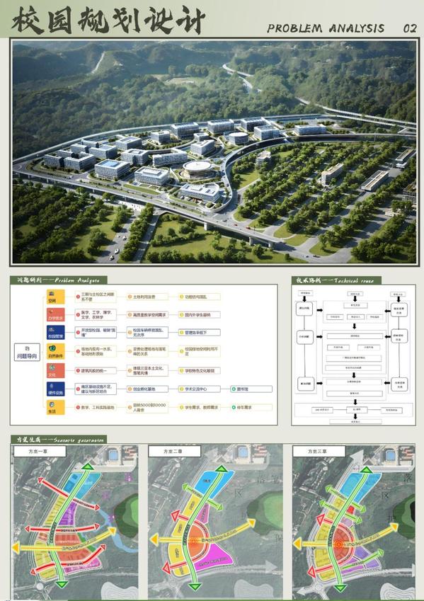 本课程教学改革过程深入贯彻了 “三个校园”理念和产品思维理念,逐步探索出了一条特色鲜明的以成果为导向的教学模式。课程设计选题围绕三亚学院校园三期城市设计,要求同学们根据三亚学院十四五发展规划,结合国家与地方相关标准,梳理当今高等教育发展趋势、校园规划的要素与系统、校园与城市的关联、城市上位规划对校园规划设计的制约与引导机制等方面的内容,进行三亚学院校园三期概念性城市设计,为三亚学院更名三亚大学做好校园规划论证工作。