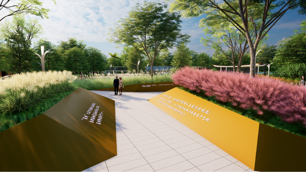 以耐候钢板为载体,通过镂空雕刻、锈板肌理等工艺,将崖州“渔港文化”“黎苗风情”、“科举历史”转化为立体景观语言。文化展示墙嵌入AR互动装置,扫码可观看《崖州志》动画场景;夜间灯光投射历史人物剪影,打造“白天观锈板、夜晚赏光影”的沉浸式体验,游客停留时间平均增加25分钟。