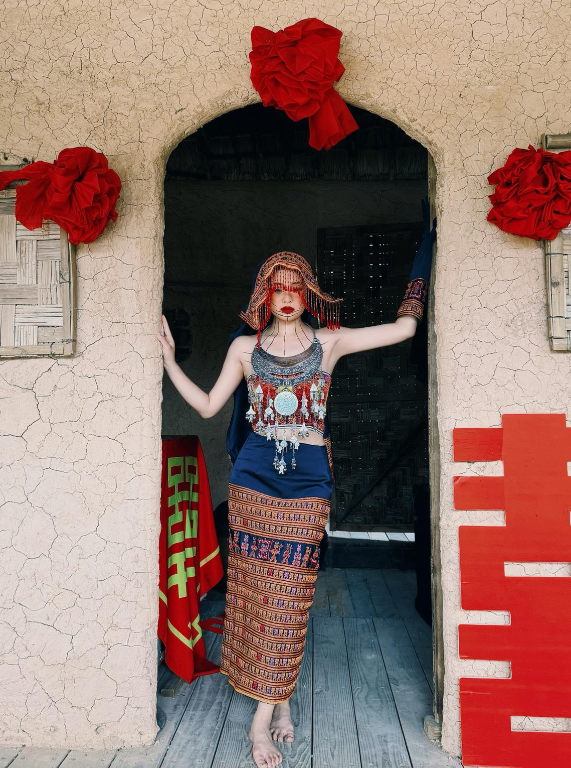 三亚槟榔谷作为国家 5A 级景区,是海南民族文化的重要展示窗口,这里完整保存和传承着黎族、苗族等少数民族的传统文化。此次选择在槟榔谷取景拍摄,不仅是因为其独特的自然风光与浓郁的民族风情相得益彰,更是希望借助景区的文化氛围,让旅拍作品更具文化深度与感染力。槟榔谷内的黎族传统村落、古老的船型屋、神秘的谷内雨林,都成为旅拍作品的天然背景,与创新设计的黎族服饰造型相互映衬,完美诠释了民族文化与自然景观的融合之美。作品由师生调研景区文化基因后创作。学生们将黎族传文身文化,传统服饰中的图腾、锦织技艺这些文化符号在设计中解构为可穿戴的时尚语言。此次创作成果可直接服务于文旅产业。