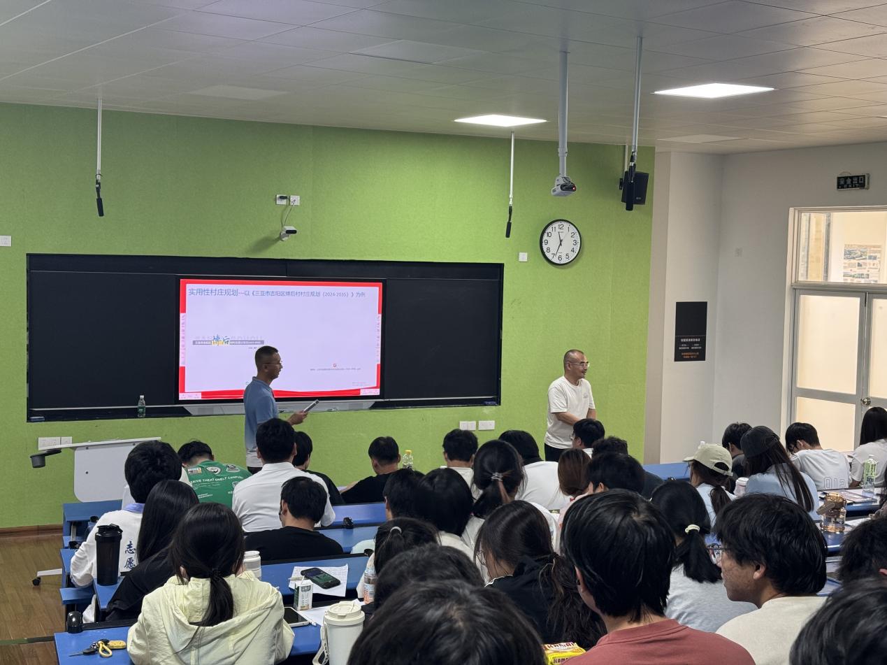 2025年6月18日上午书德楼312教室,海南中元市政工程设计公司杨春淮院长进行了一场精彩的专业前沿讲座。讲座开篇,杨院长围绕“城乡规划体系建设”展开,结合2035国土空间规划等政策,解析国家规划管理体系的层级逻辑。从国家级战略布局,到地方规划落地,清晰呈现城乡规划如何统筹空间资源,让同学们理解规划工作是国家发展“蓝图绘制”的关键环节 。
