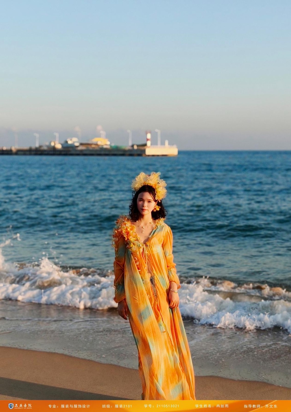 作品充分考量热带滨海度假人群的多元需求,运用轻盈透气的天然面料,搭配热带专属的醒目色彩与印花元素,将三亚独特的地域风情、自然资源如海洋、椰林、阳光,转化为视觉符号。例如《漫逸假日》系列,飘逸长裙兼具防晒功能,多穿式泳装罩衫轻盈变身,细节处展现了对现代旅人生活场景与身体需求的细腻洞察。学生们敏锐捕捉热带海岛度假场景,巧妙地将椰树绿、大海蓝、落日橙黄融入设计,利用透气面料和烫花工艺,将三亚的地域风情和舒适体验完美融合。这样的设计不仅满足了度假者对舒适性、便捷性、防晒保护的要求,还契合了他们在社交场景中的形象展示需求,为海南自贸港背景下文旅产业的升级提供了极具标识性和体验感的设计方案。